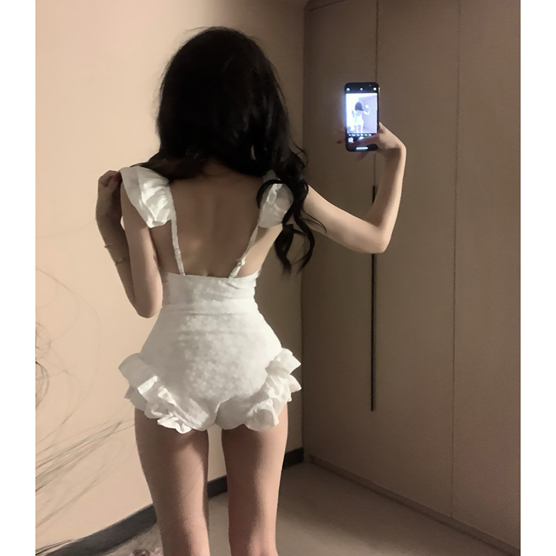 新款 连体钢托泳衣女性感纯欲风高级感海岛度假温泉小胸聚拢韩ins