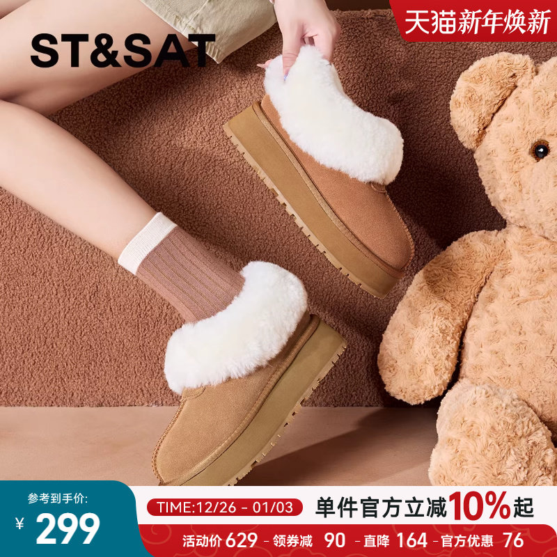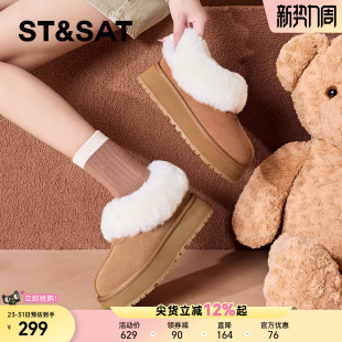 直 星期六厚底雪地靴2025冬季 新加绒加厚保暖短靴东北毛毛棉鞋