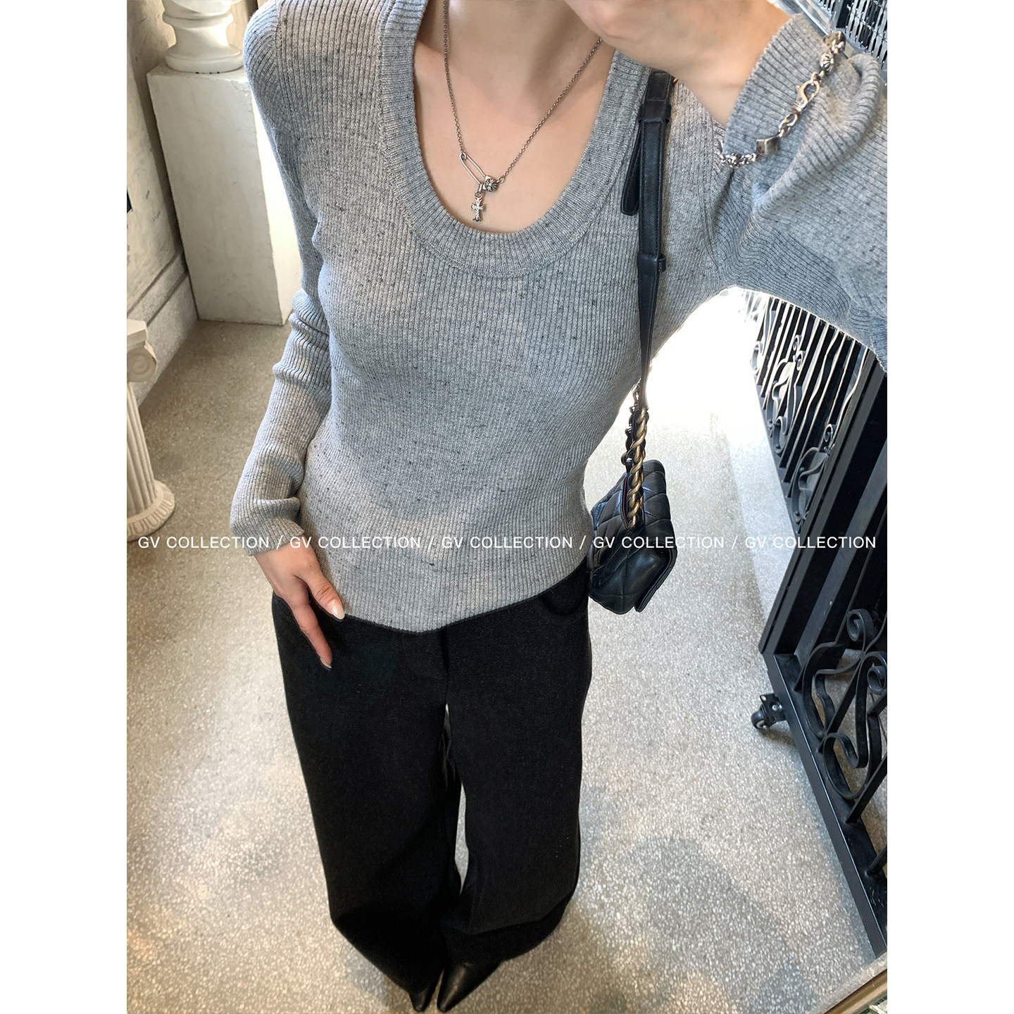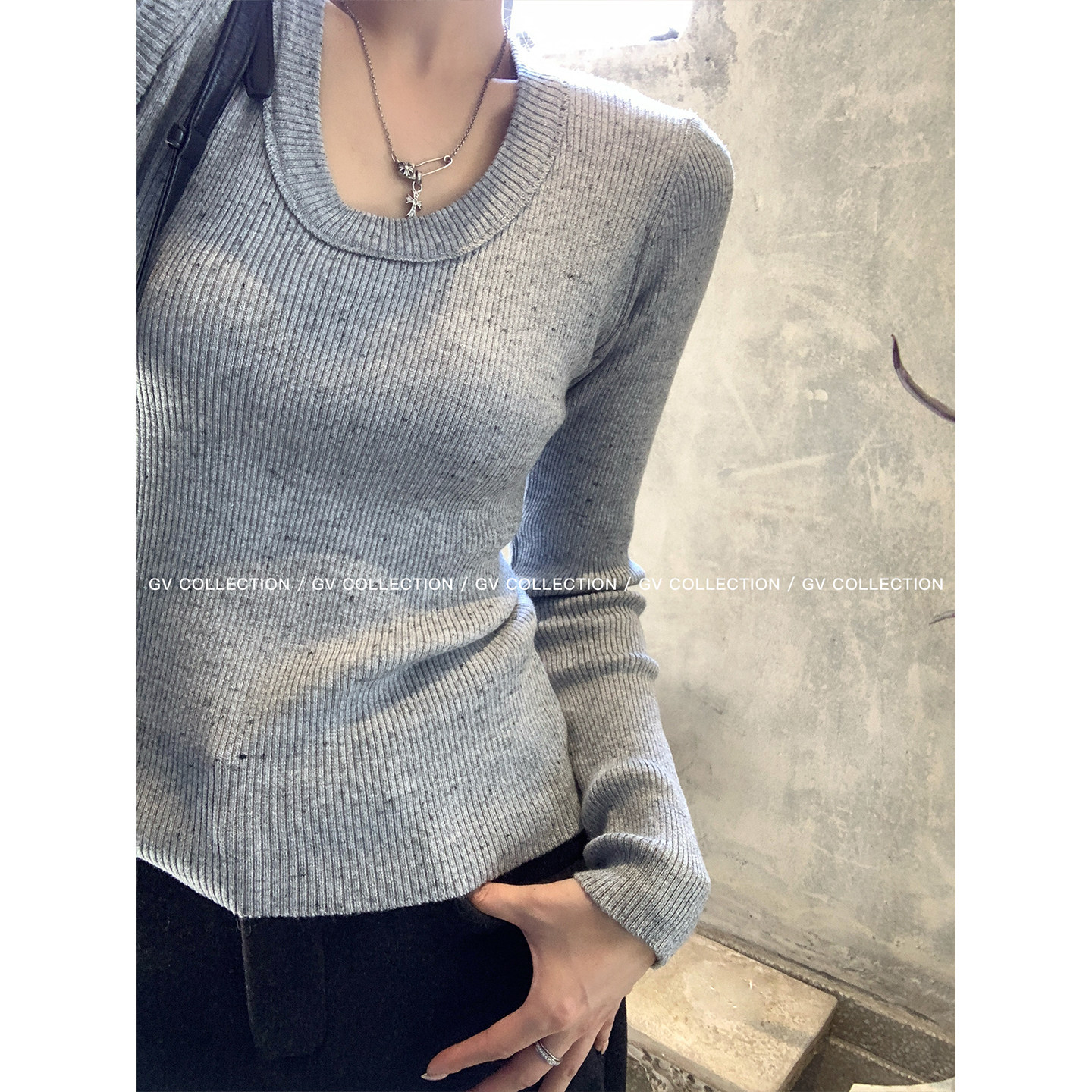 新款 GV大白哥 针织打底冬季 羊毛星点混色竖条修身 上衣 简约万能系