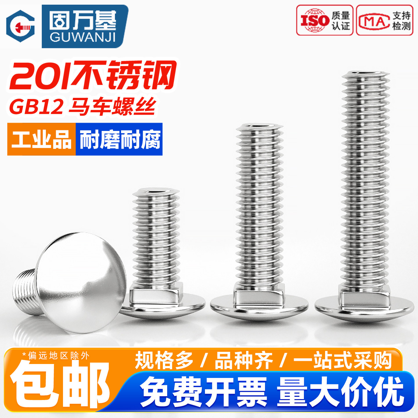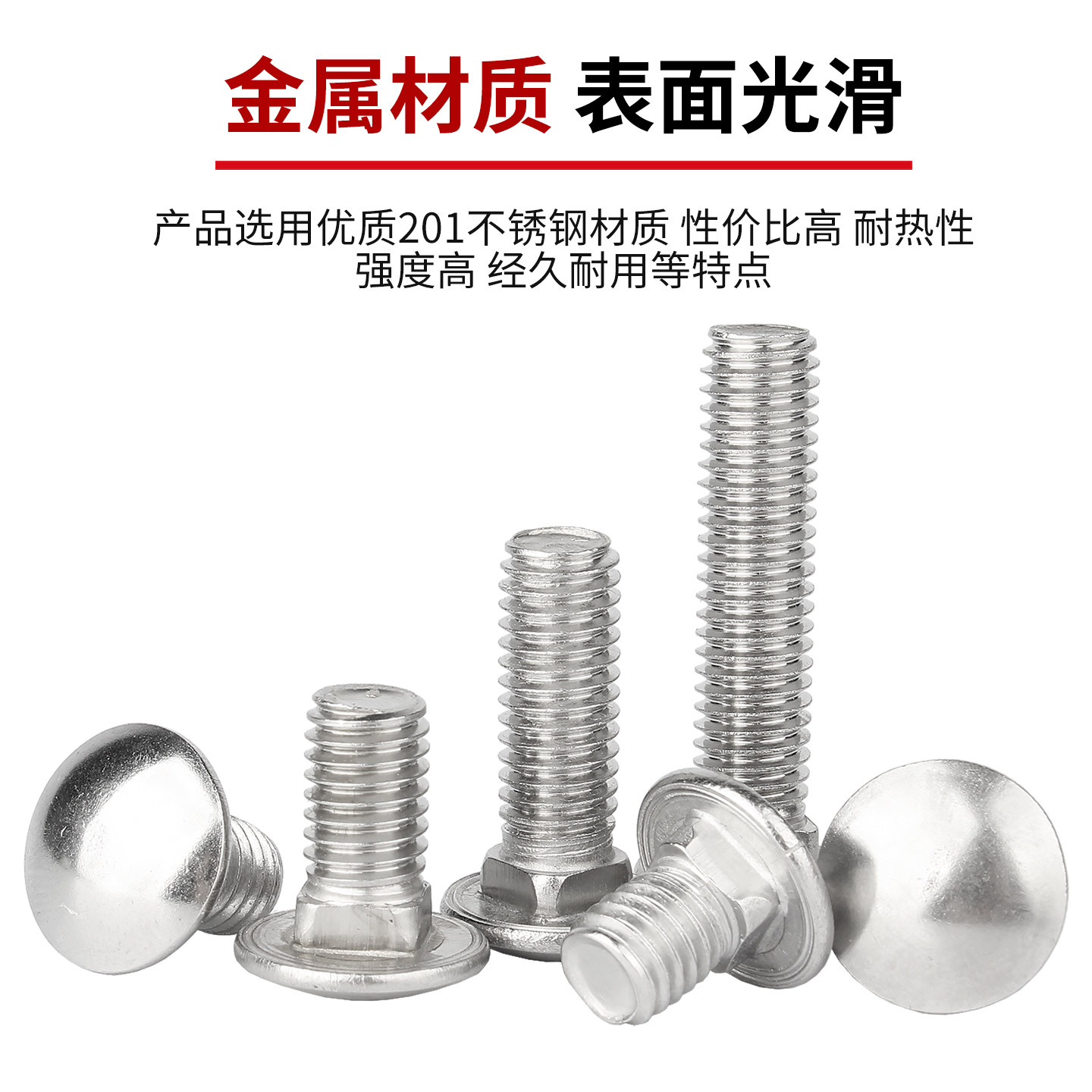 固万基201不锈钢马车螺丝方颈螺栓大半圆头扁头货架螺丝钉M5 M12