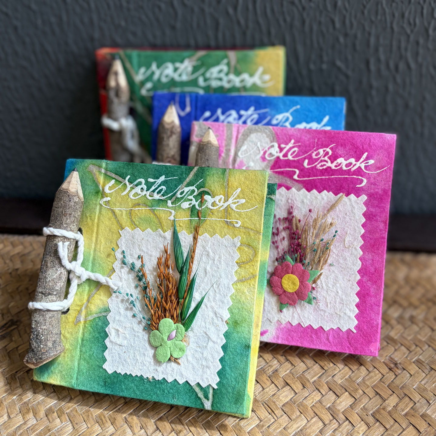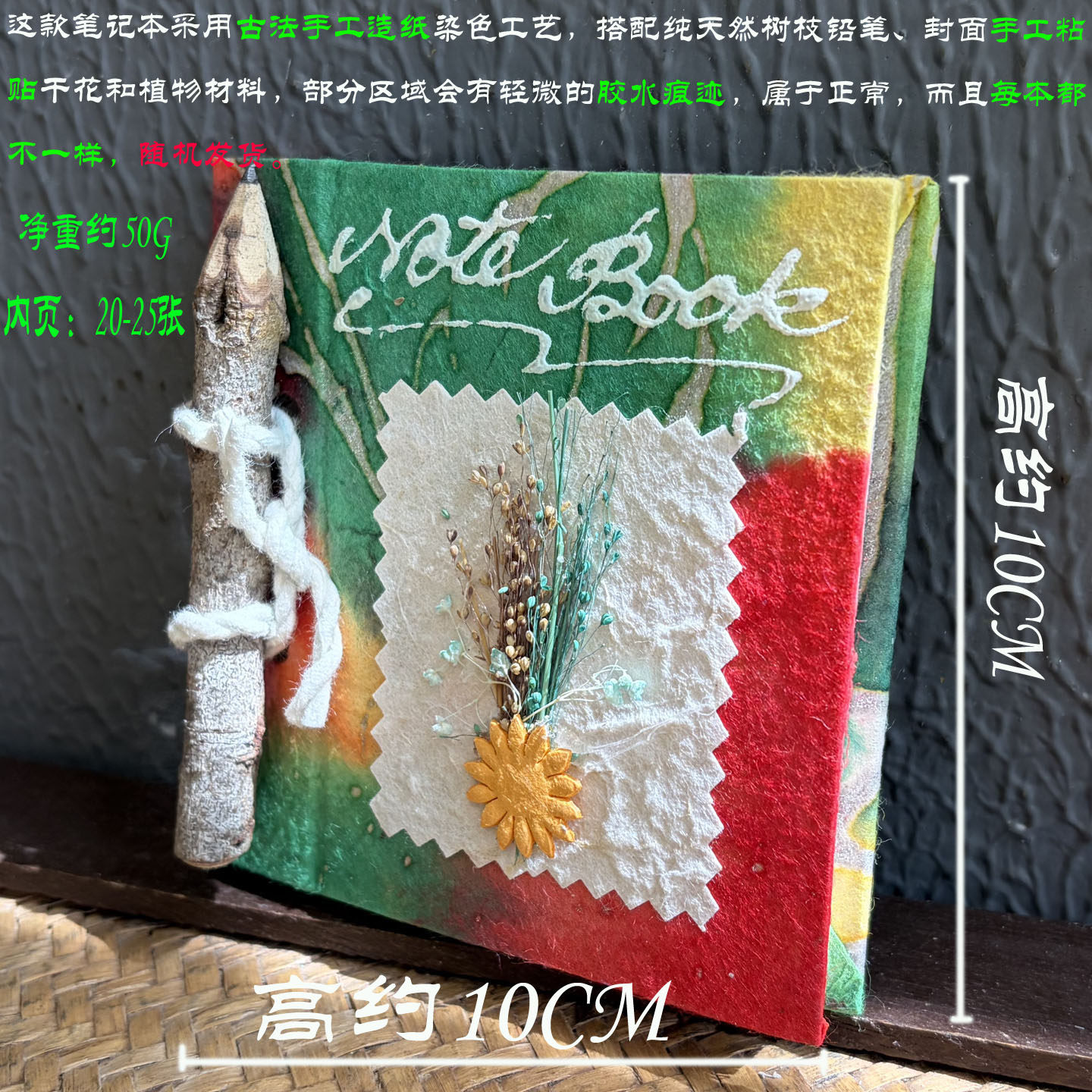 泰国纯手工纸笔记本手账记事真干花复古DIY学生作业小礼品