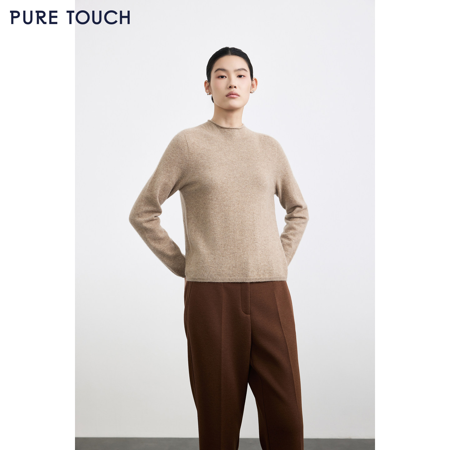 羊绒衫 商场同款 25秋冬新款 TOUCH女装 卷边半高领宽松针织毛衣 PURE