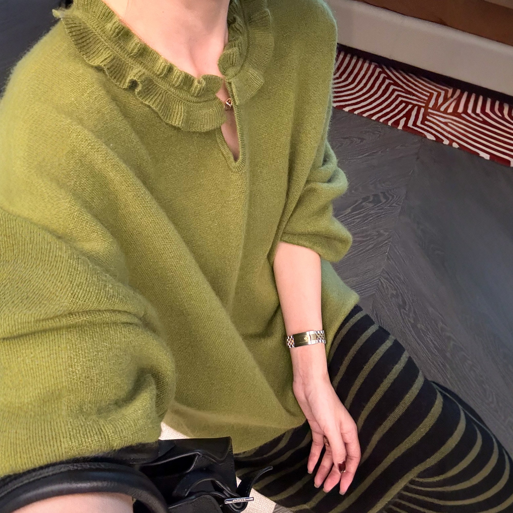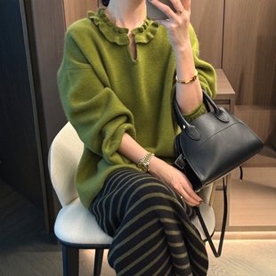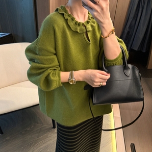 时尚 木耳边花边浣熊绒针织衫 欧货女装 新款 毛衣潮 女欧洲站2025冬装