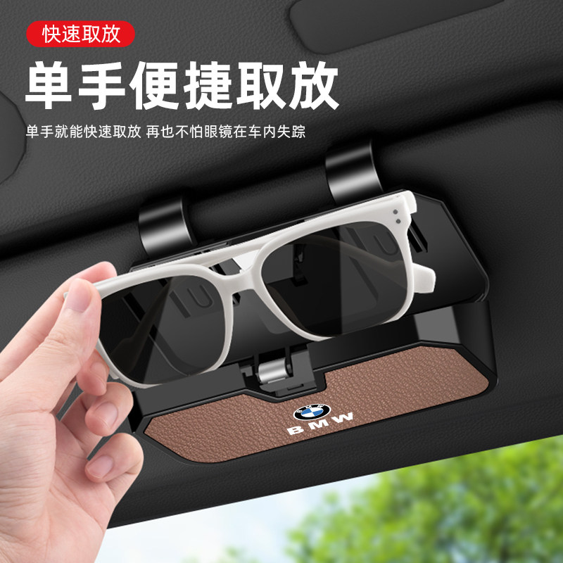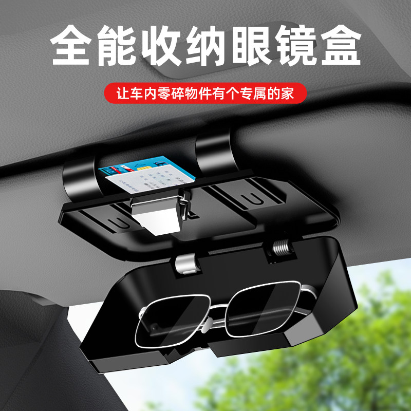 车载眼镜盒汽车主驾眼镜遮阳板太阳墨镜盒卡片夹油卡山羊皮收纳盒