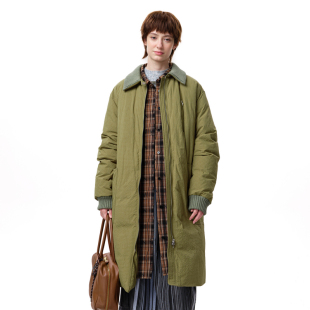 羽绒服女 yangyang系列撞色罗纹领开衩长款 MOVEUP幻走2025冬季 新品