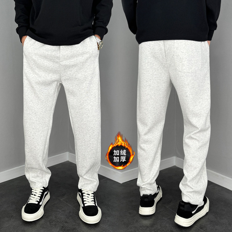 白灰色卫裤 子男春秋季 男士 新款 2025新款 宽松运动裤 灰色弯刀休闲裤