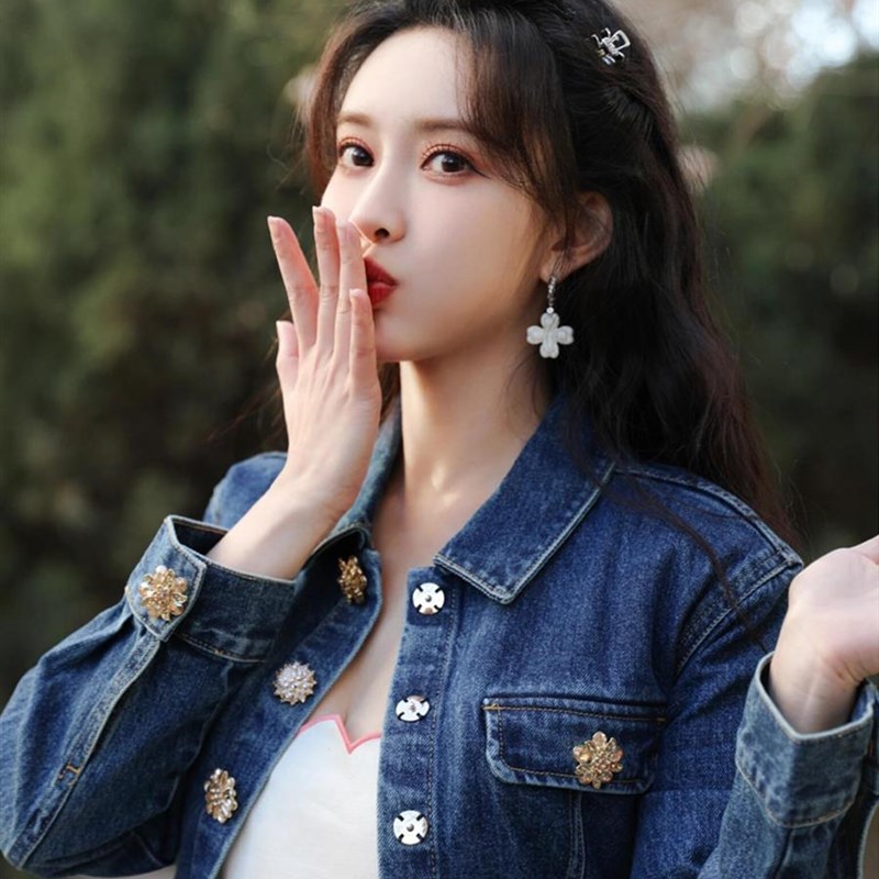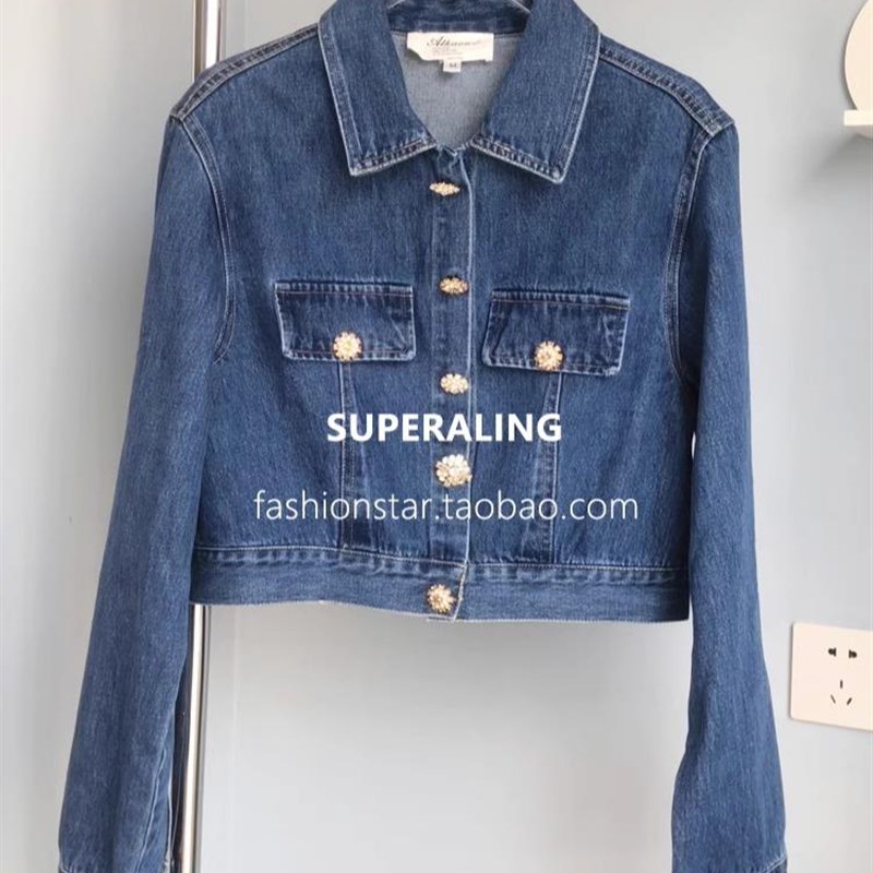 RoujeDsyle刘亦菲同款 小个子钻扣上衣 覆古牛仔外套女春秋短款