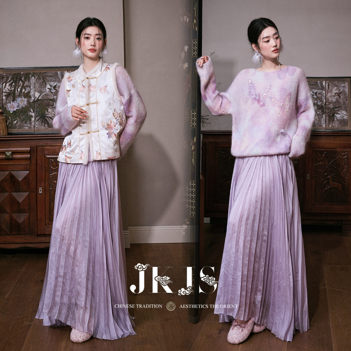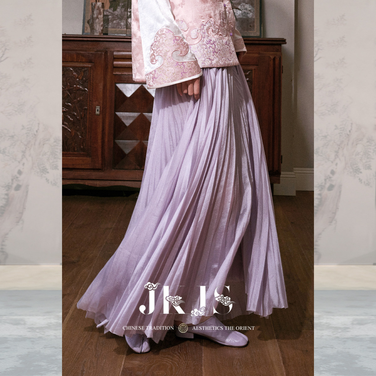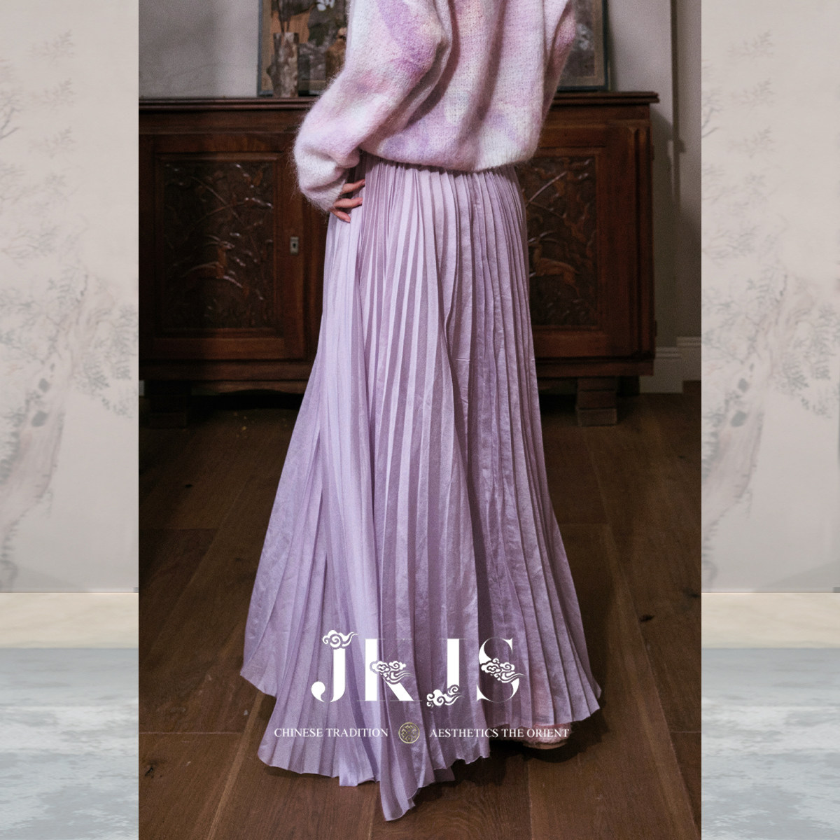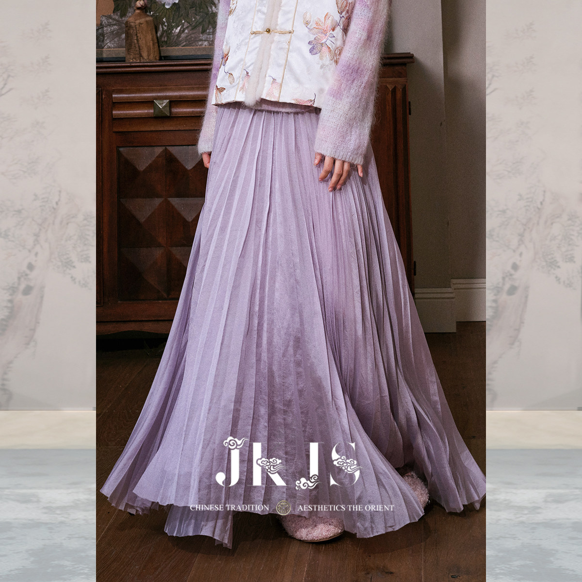 春半身裙新中式 人丝压绉半裙女2026新款 搭配百褶裙 紫软纱 JKJS