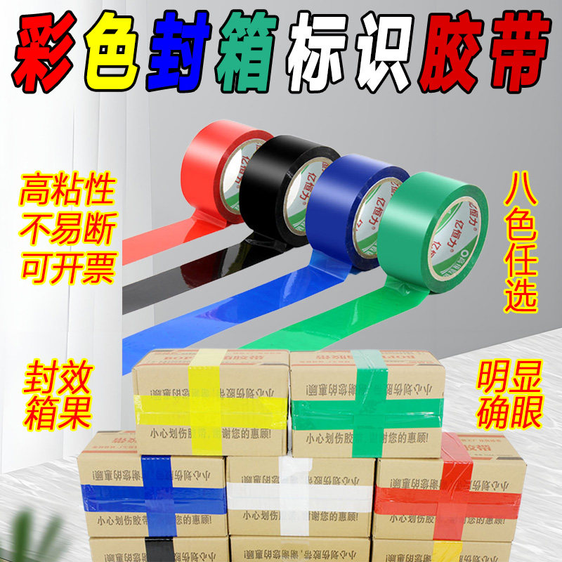 加宽加厚大卷彩色胶带封箱打包带多彩封口宽胶布黄红蓝绿白胶纸批发快递包装 胶条打包高粘度粘性防水耐磨标识