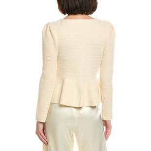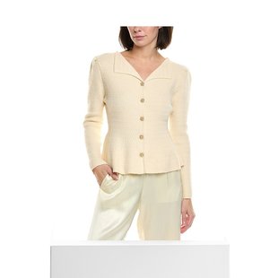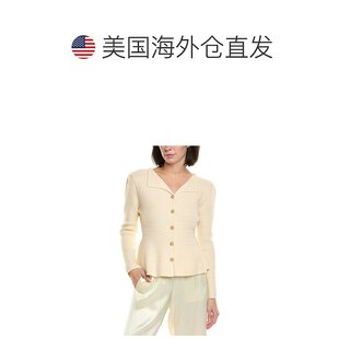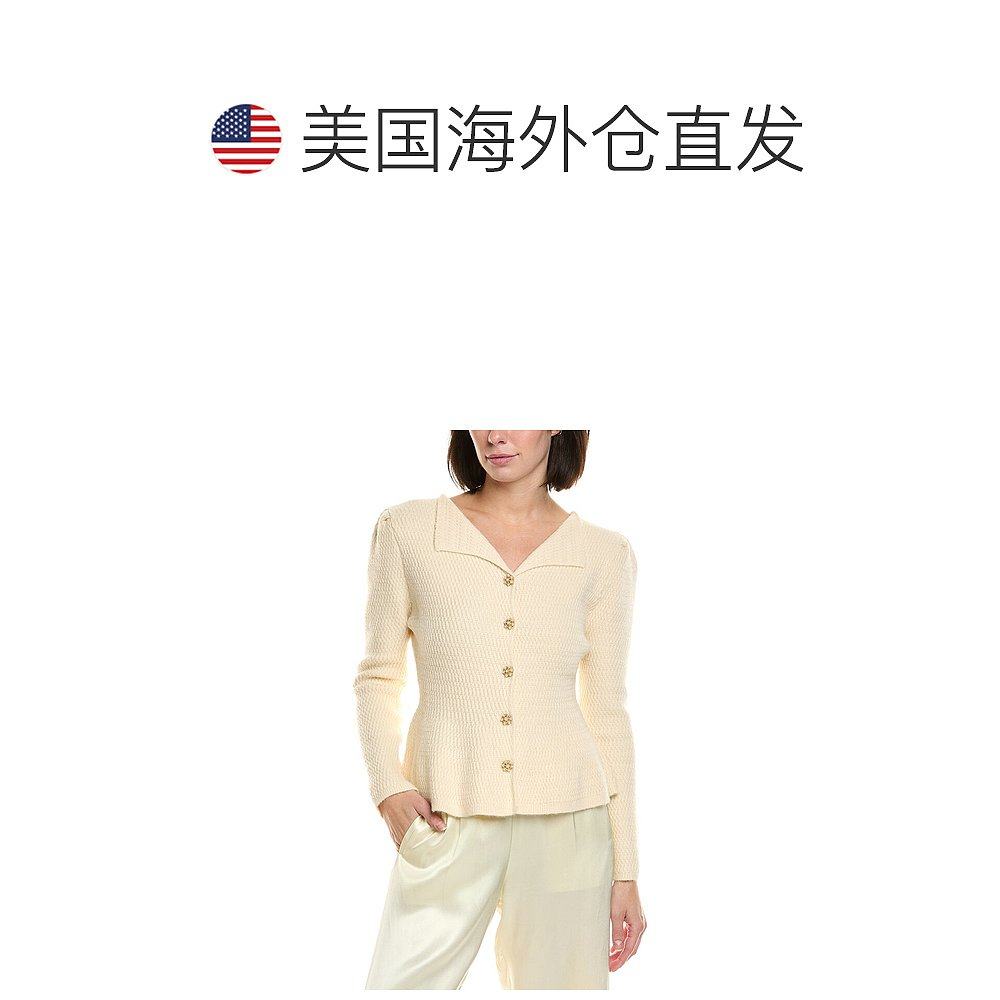 美国奥莱直发开衫 自营Gracia纹理领Peplum开襟羊毛衫 棕色