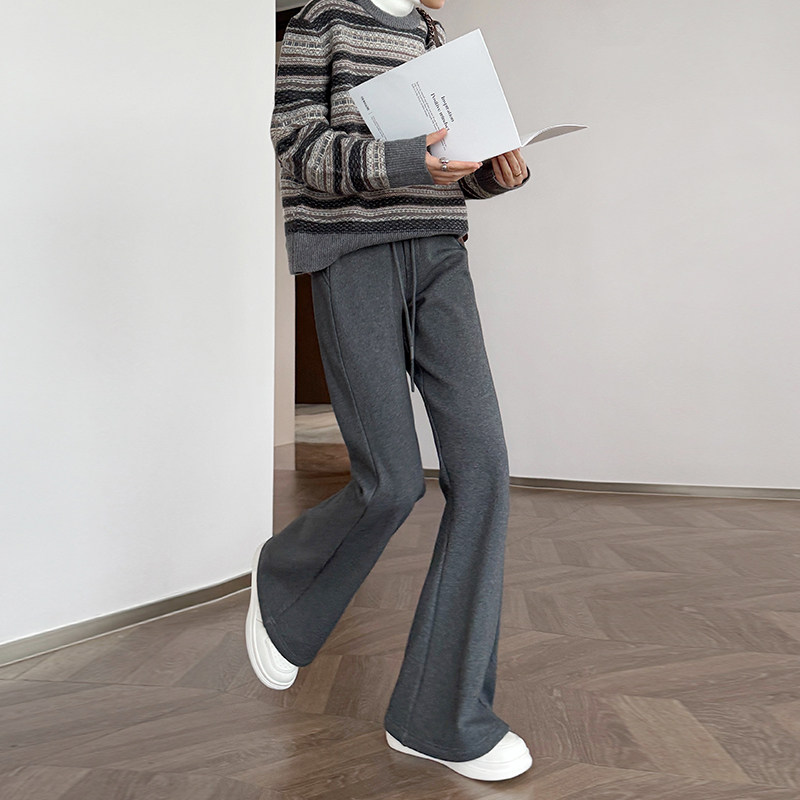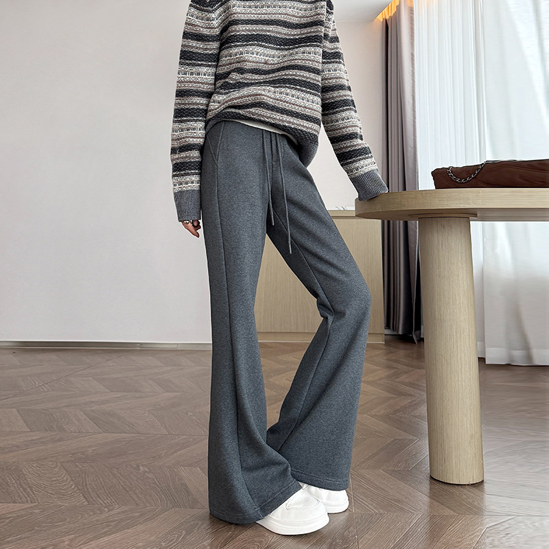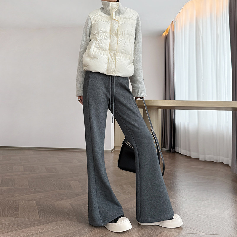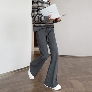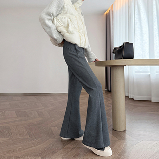 直筒 高个子不贴腿窄版 灰色加绒微喇叭裤 女秋冬加厚高腰垂感加长版