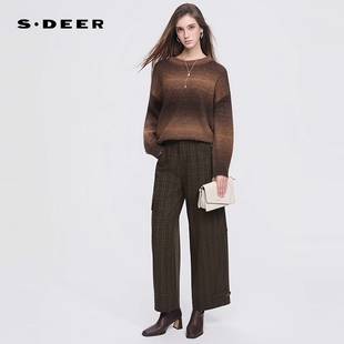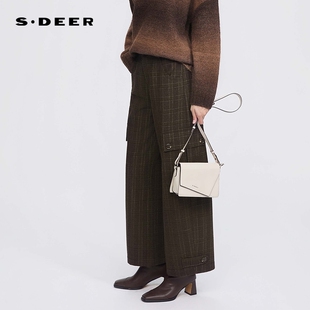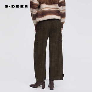 高腰插袋格纹直筒毛呢长裤 时尚 S254Z0807 25年新品 sdeer圣迪奥女装