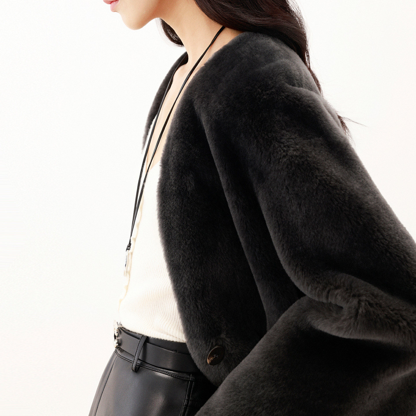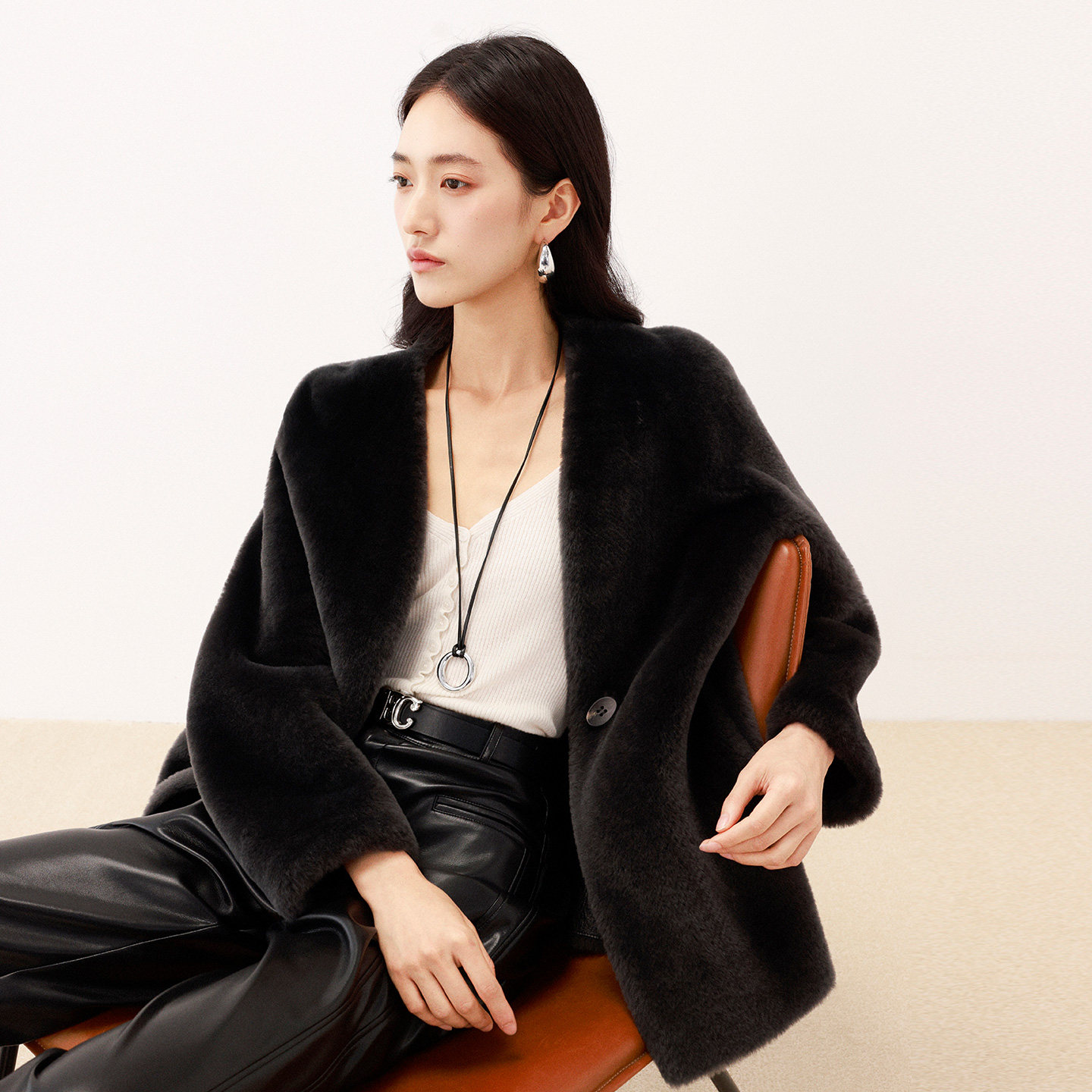 羊毛皮草V领皮毛一体外套 奕辰2025冬新款 含腰带 商场同款
