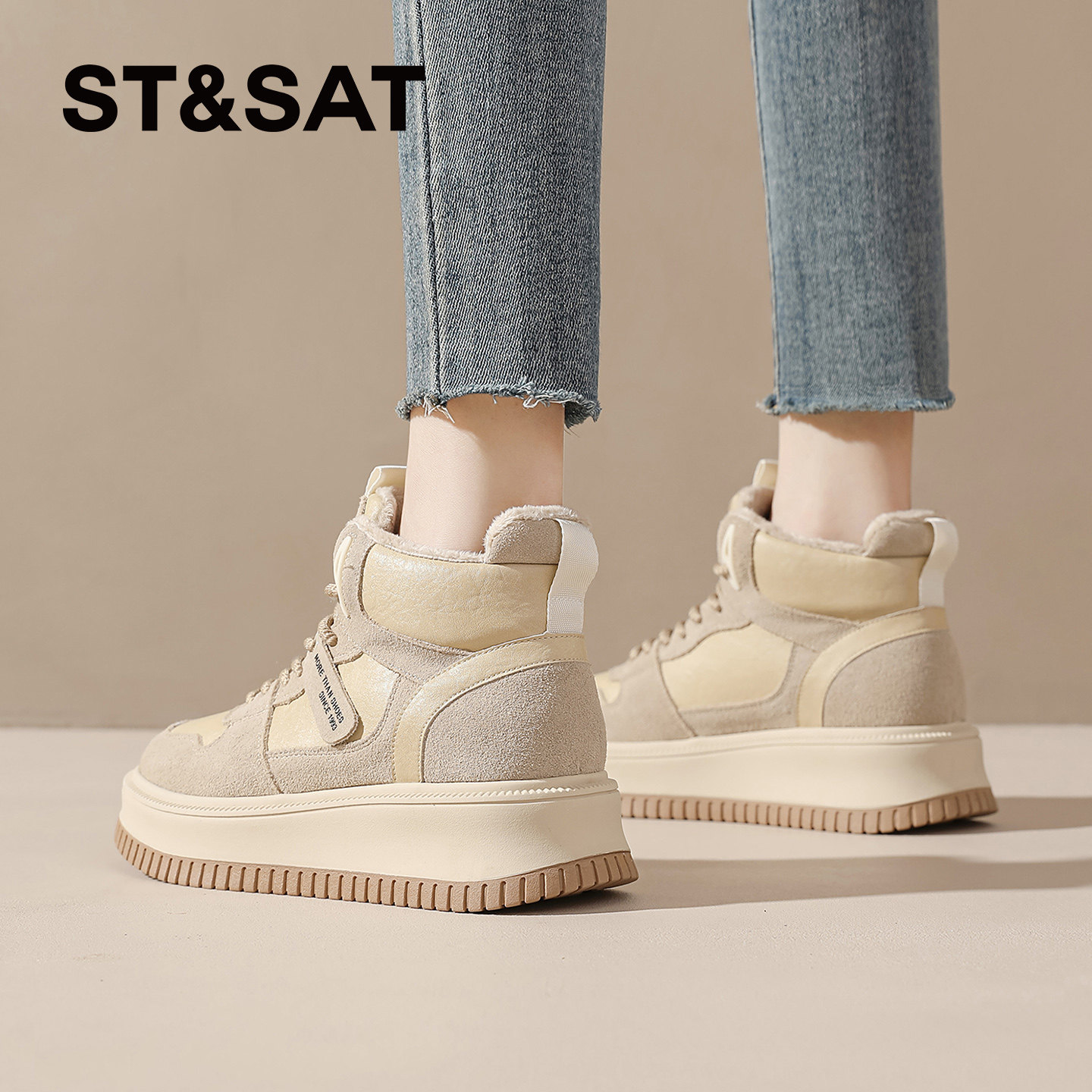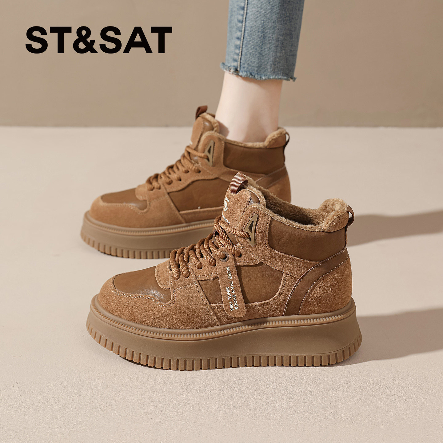 女加绒厚底增高情侣休闲运动鞋 骆驼银月老爹鞋 子 迪丽热巴同款