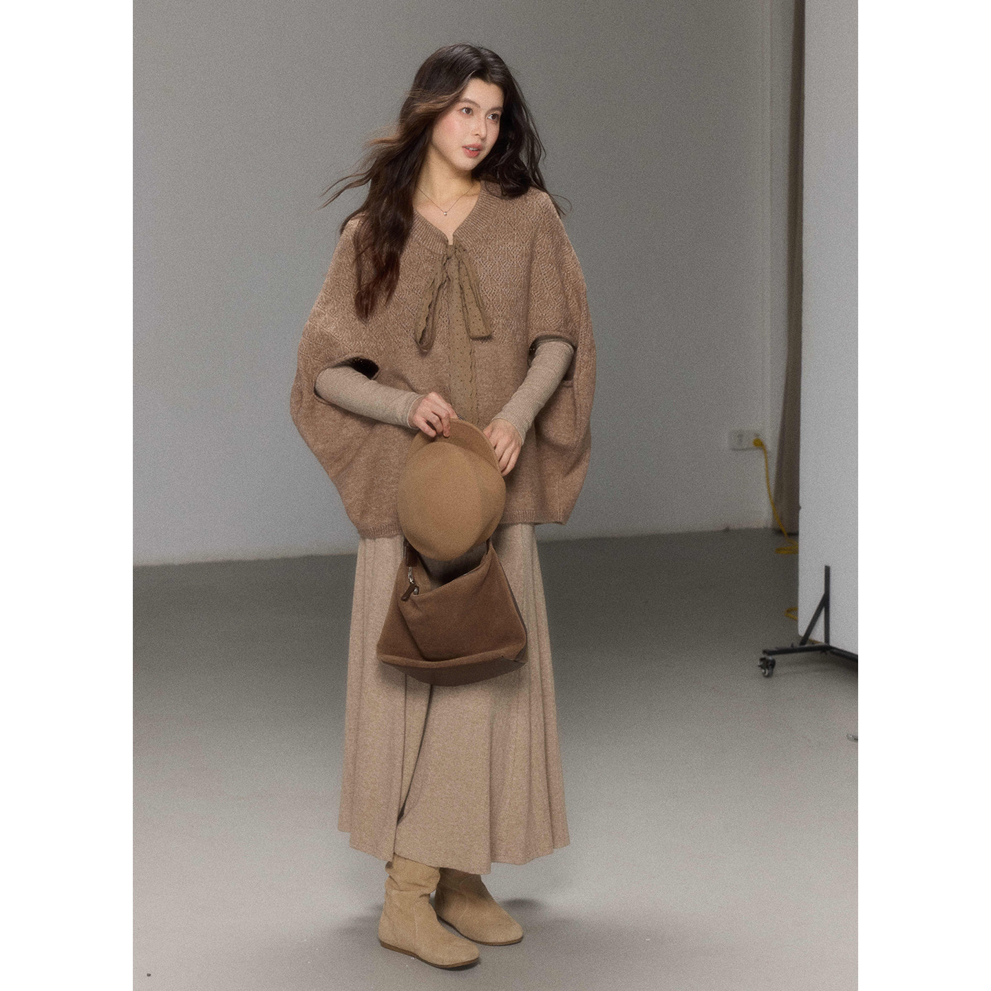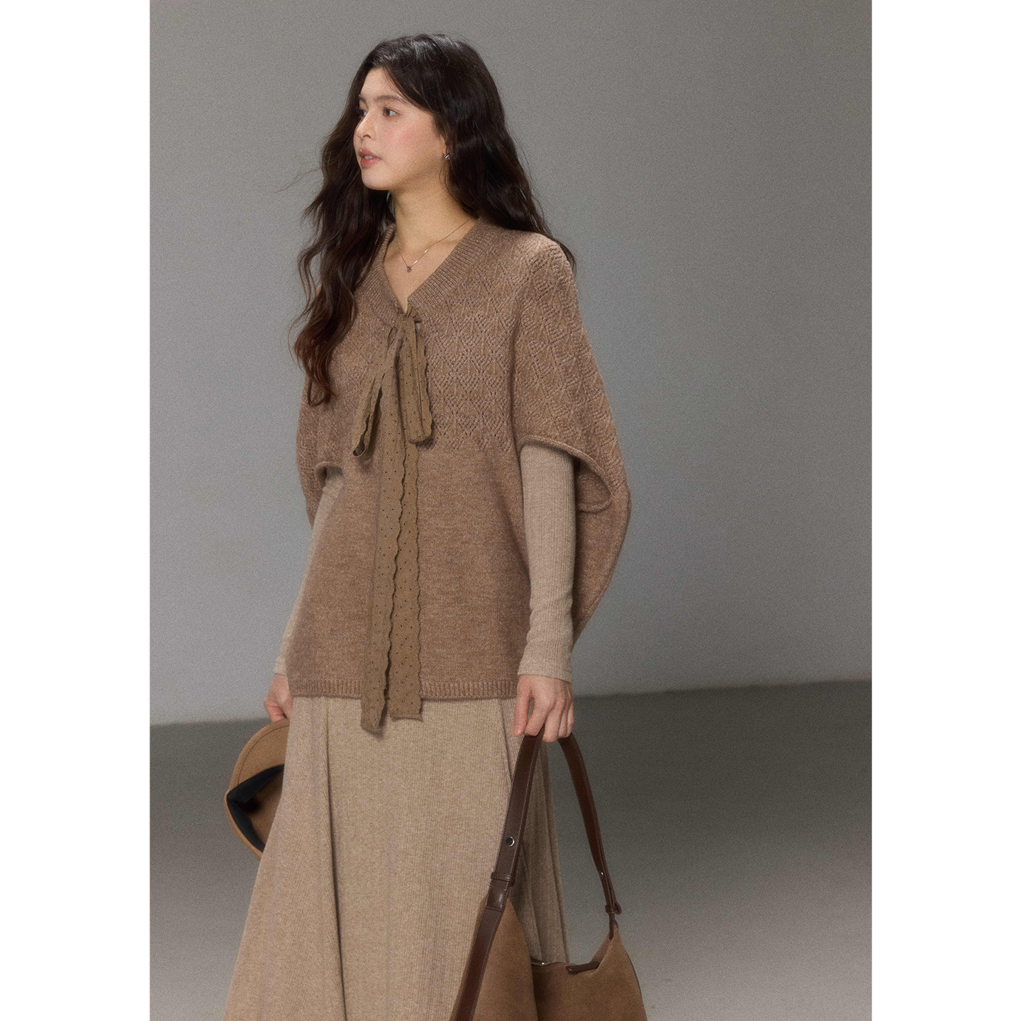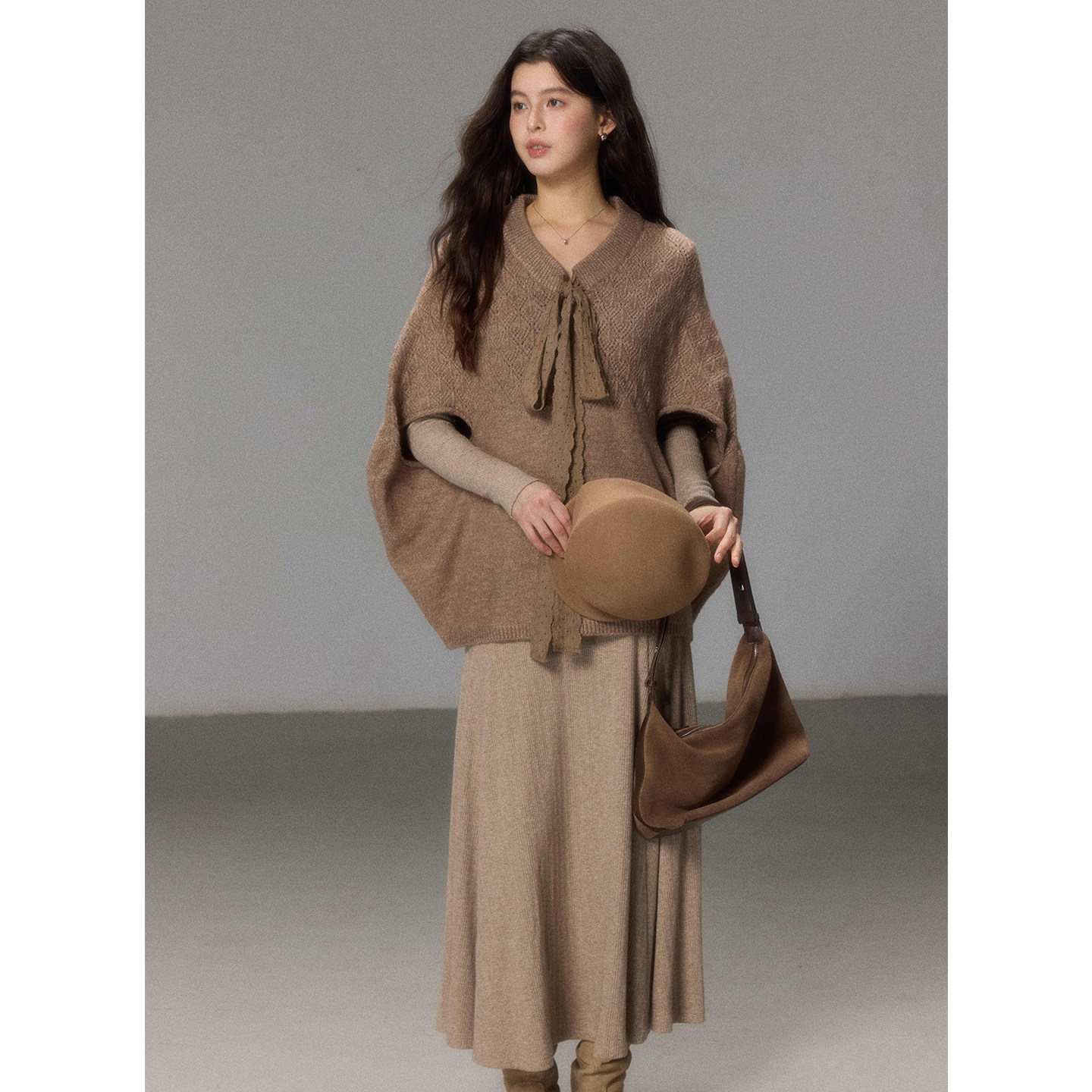 贰羊设计 氛围感复古斗篷外套女冬宽松慵懒千金风套头毛衣 驼帏