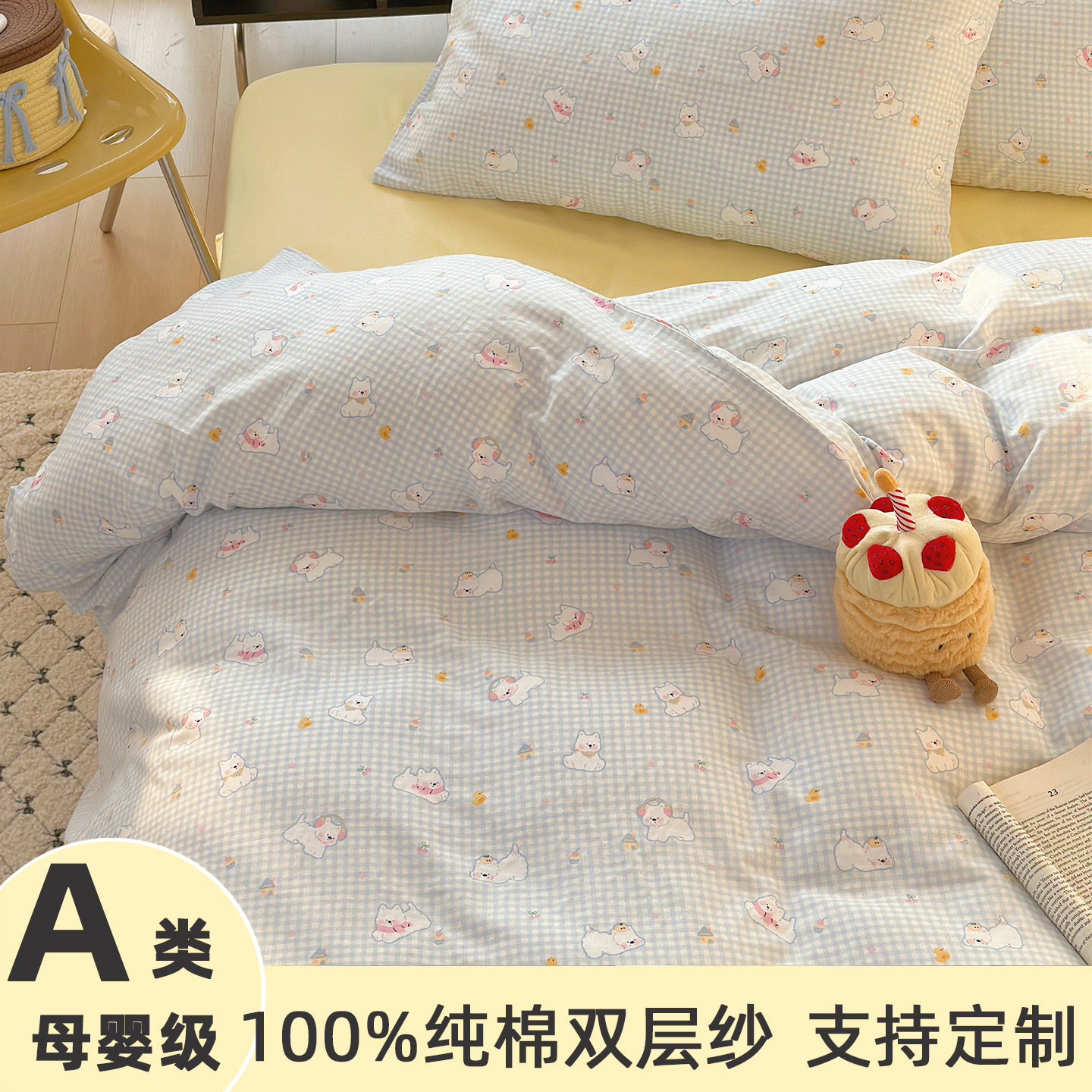 A类双层纱儿童纯棉被套单件1.2x1.5cm120x150米婴幼儿园被罩定做