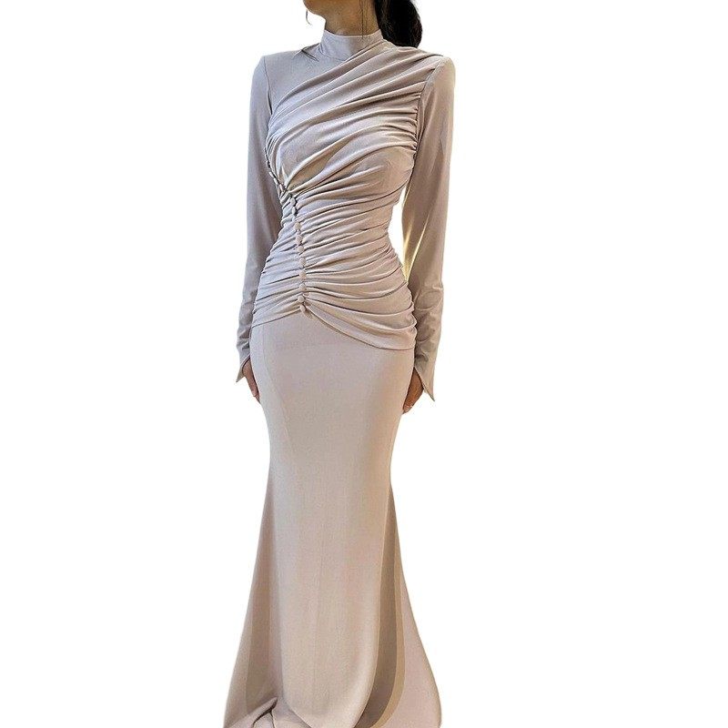 sleeved dress气质长袖 dress length 礼服拖地连衣裙 floor Long