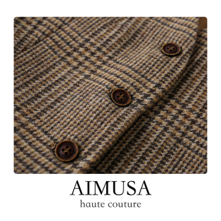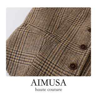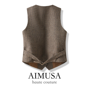 AIMUSA 复古格纹老钱风羊毛马甲背心女春夏时髦洋气马夹 26新款