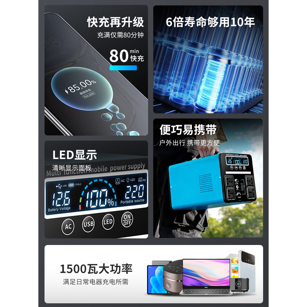 户外移动电源220v大容量便携家用自驾游直播露营摆摊应急蓄电备用