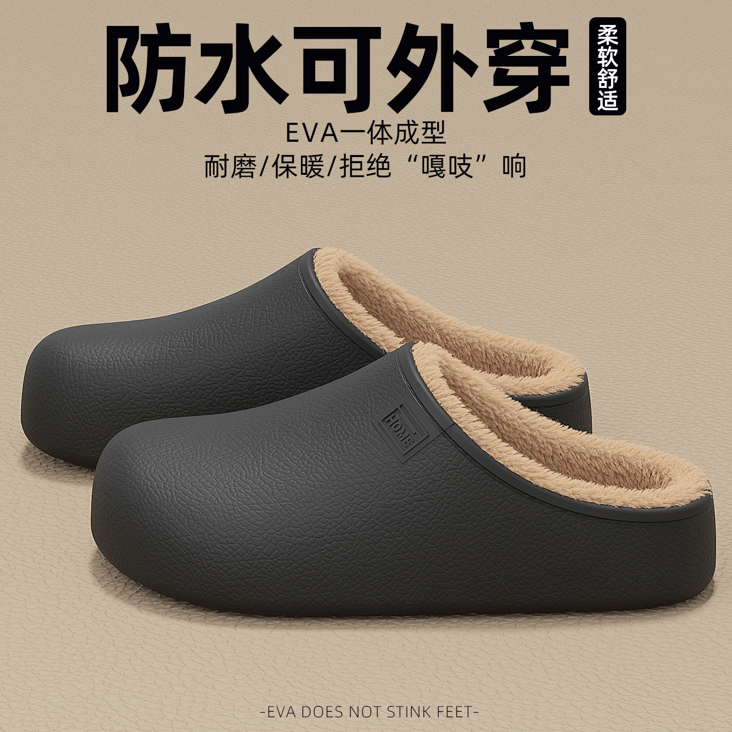 防滑室内居家加绒保暖可外穿包头拖鞋 防水棉拖鞋 2025新款 冬季 男士
