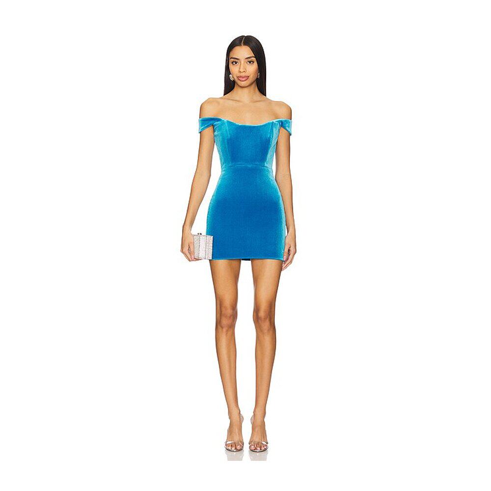 网红圣诞红色显瘦螺纹连衣裙女秋冬新款 辣妹紧身一字肩打底短裙子