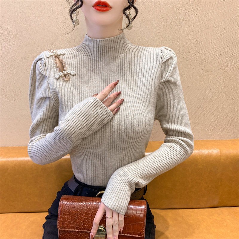 针织打底衫 高级感羊毛衫 女半高领宽松毛衣秋冬内搭加厚羊绒长袖
