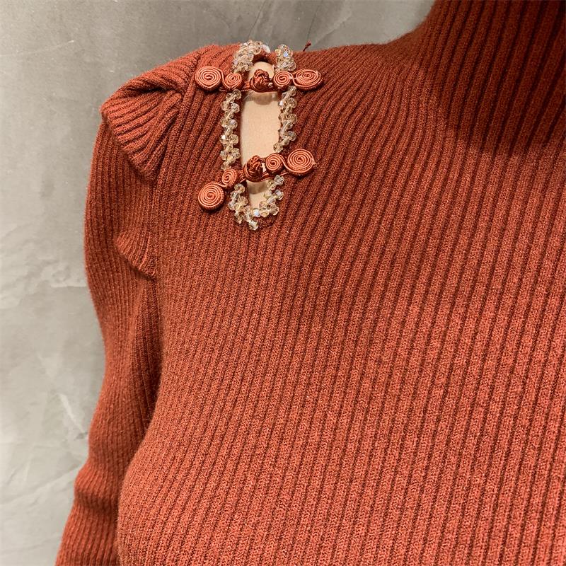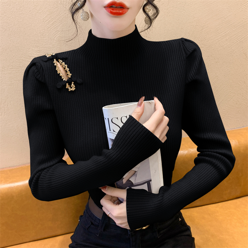 修身 女秋冬内搭正肩针织衫 高级感中领毛衣 黑色半高领打底衫 法式