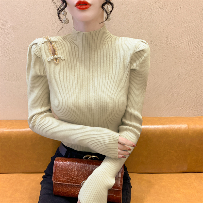 打底 丝光棉长袖 100%全棉线洋气毛衣女半高领紧身针织衫 修身