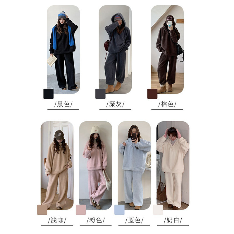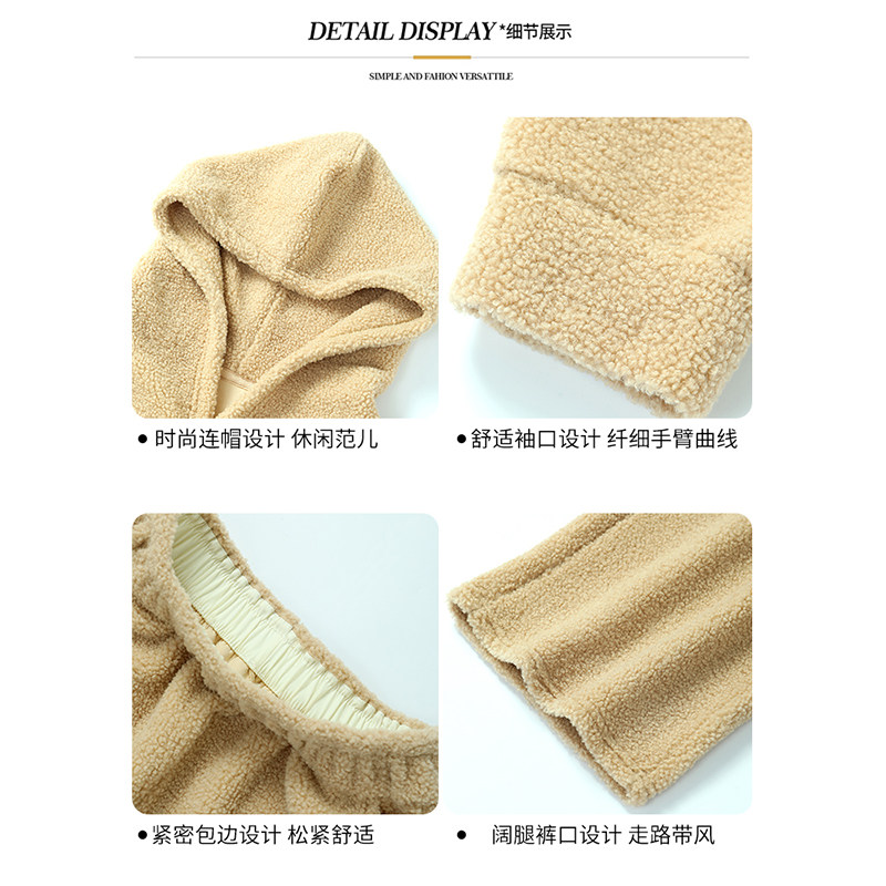 两件套女 运动慵懒风连帽摇粒绒外套阔腿裤 冬季 穿搭一整套休闲时尚
