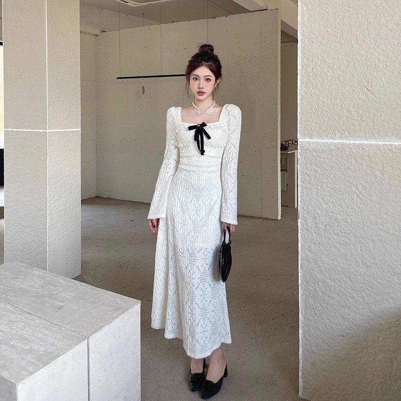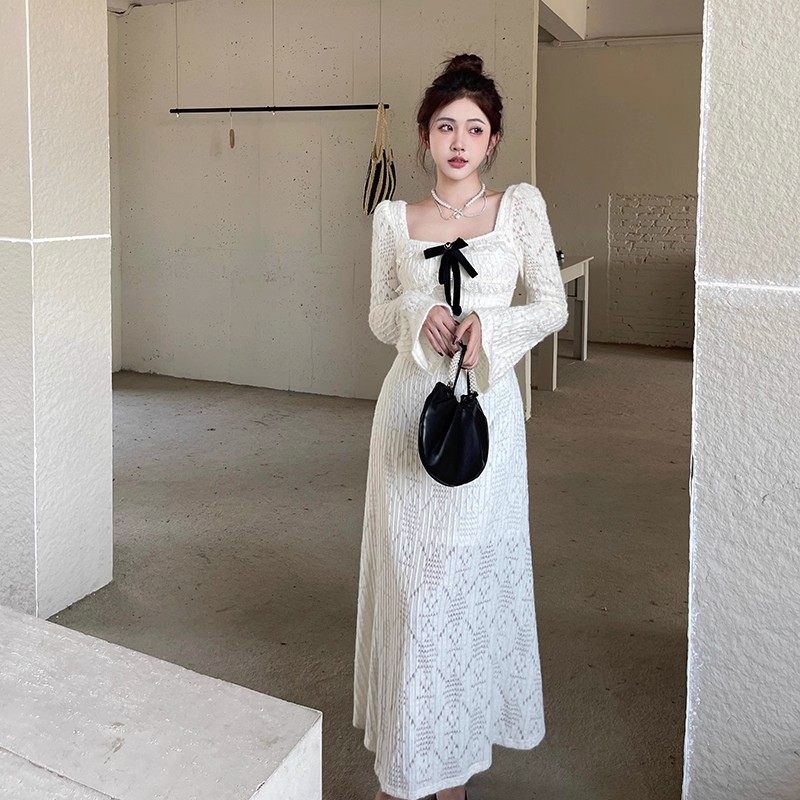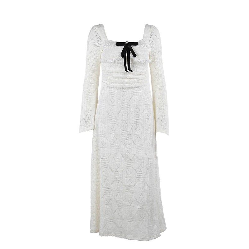小飞袖 琉光雾镜 方领蕾丝拼接设计长裙连衣裙 热狗很辣 Hotdog