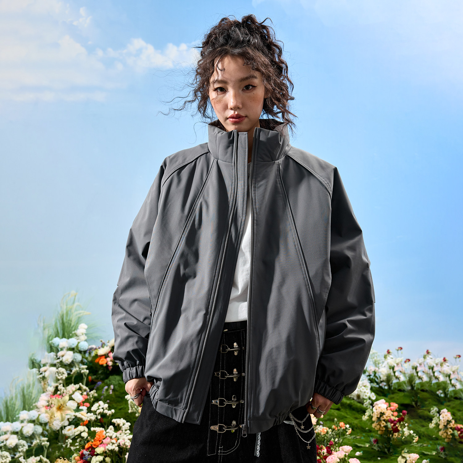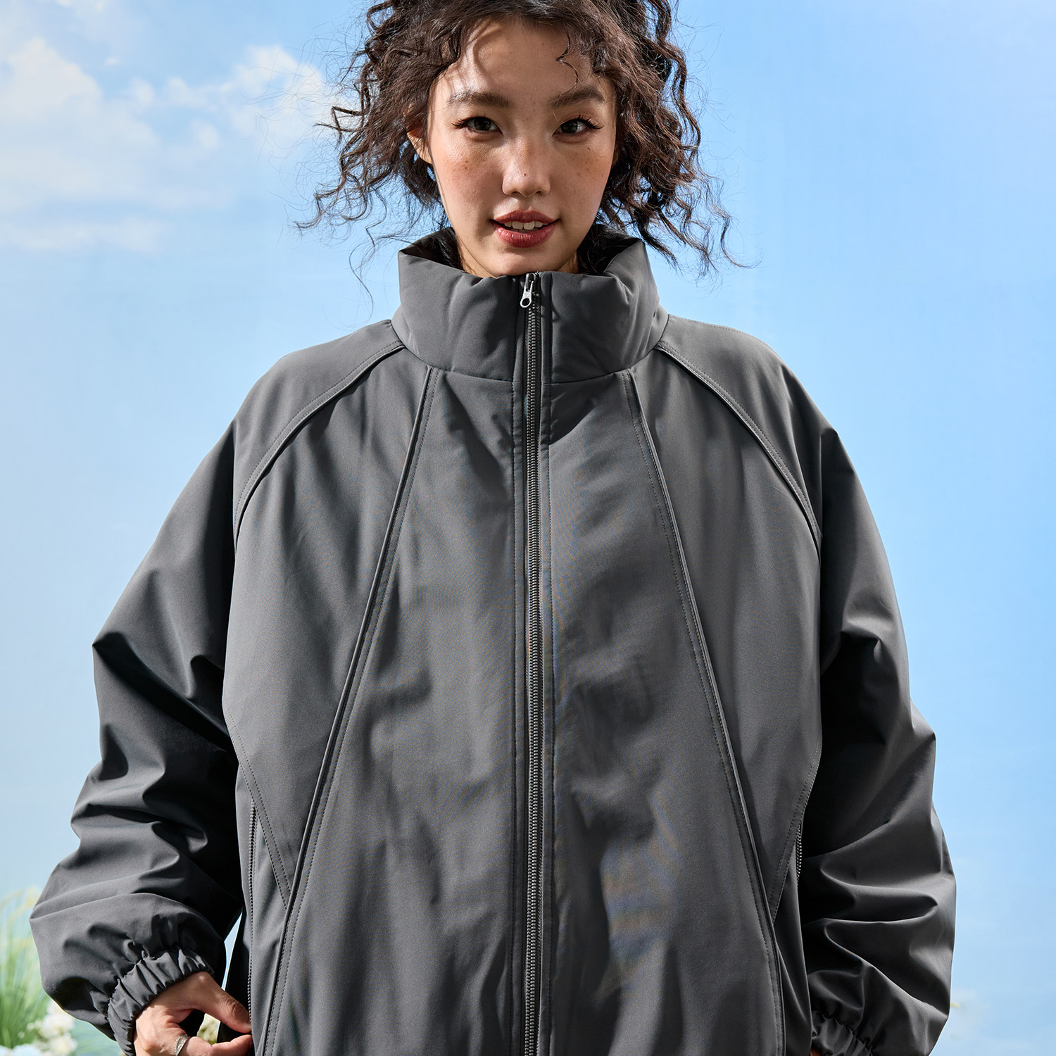 棉衣男女2026年春季 Nuthink美式 复古立领冲锋衣棉服外套拼接工装