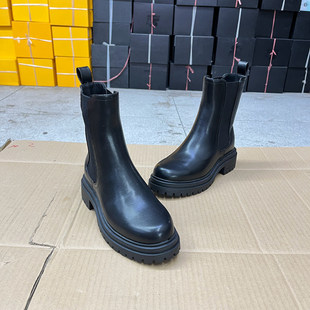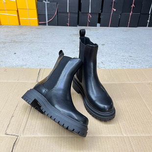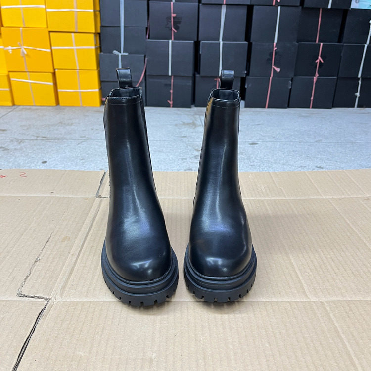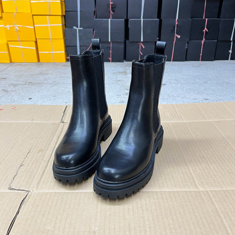 圆头纯色厚底粗跟时装 外贸原单女靴新款 短靴烟筒靴 Shoes Lady