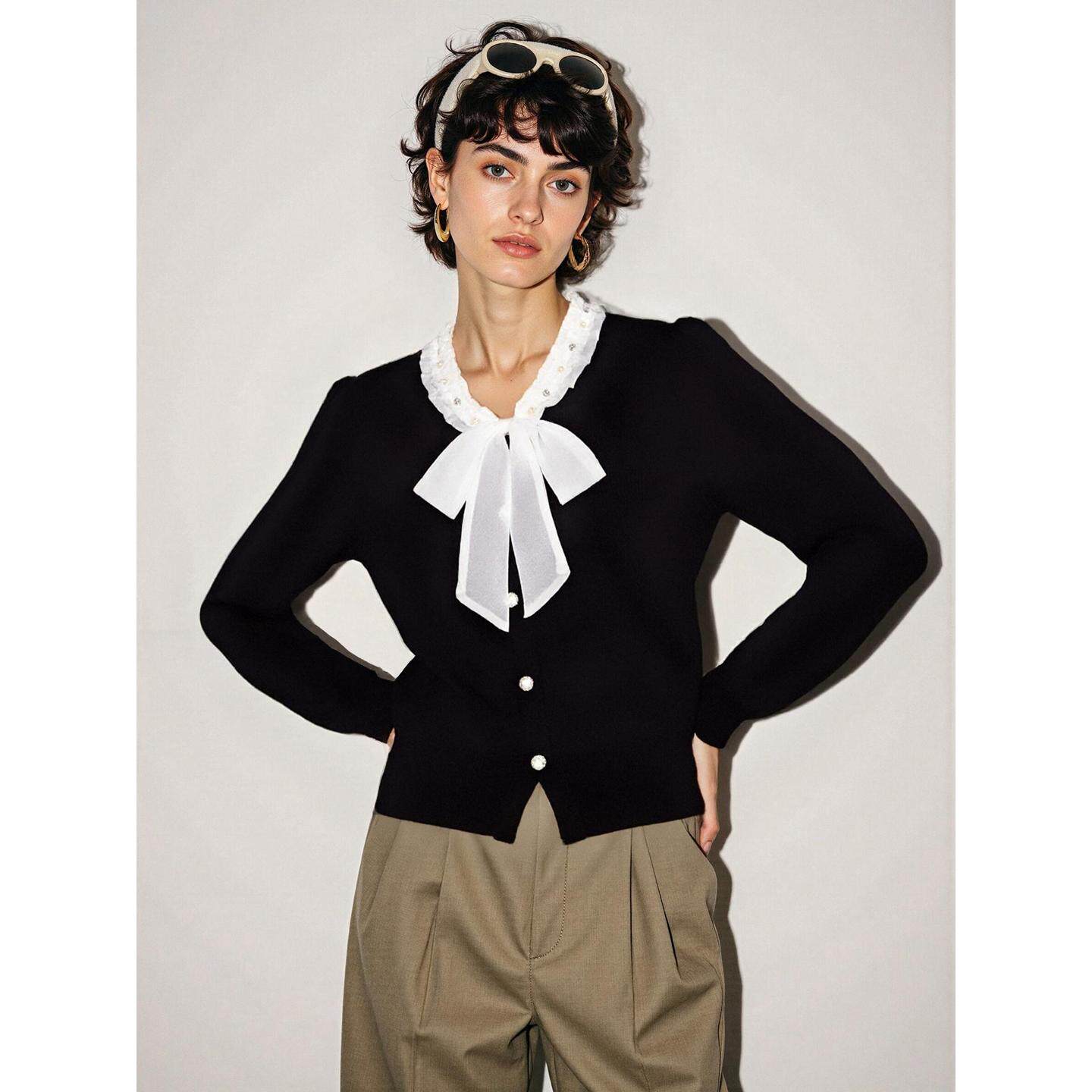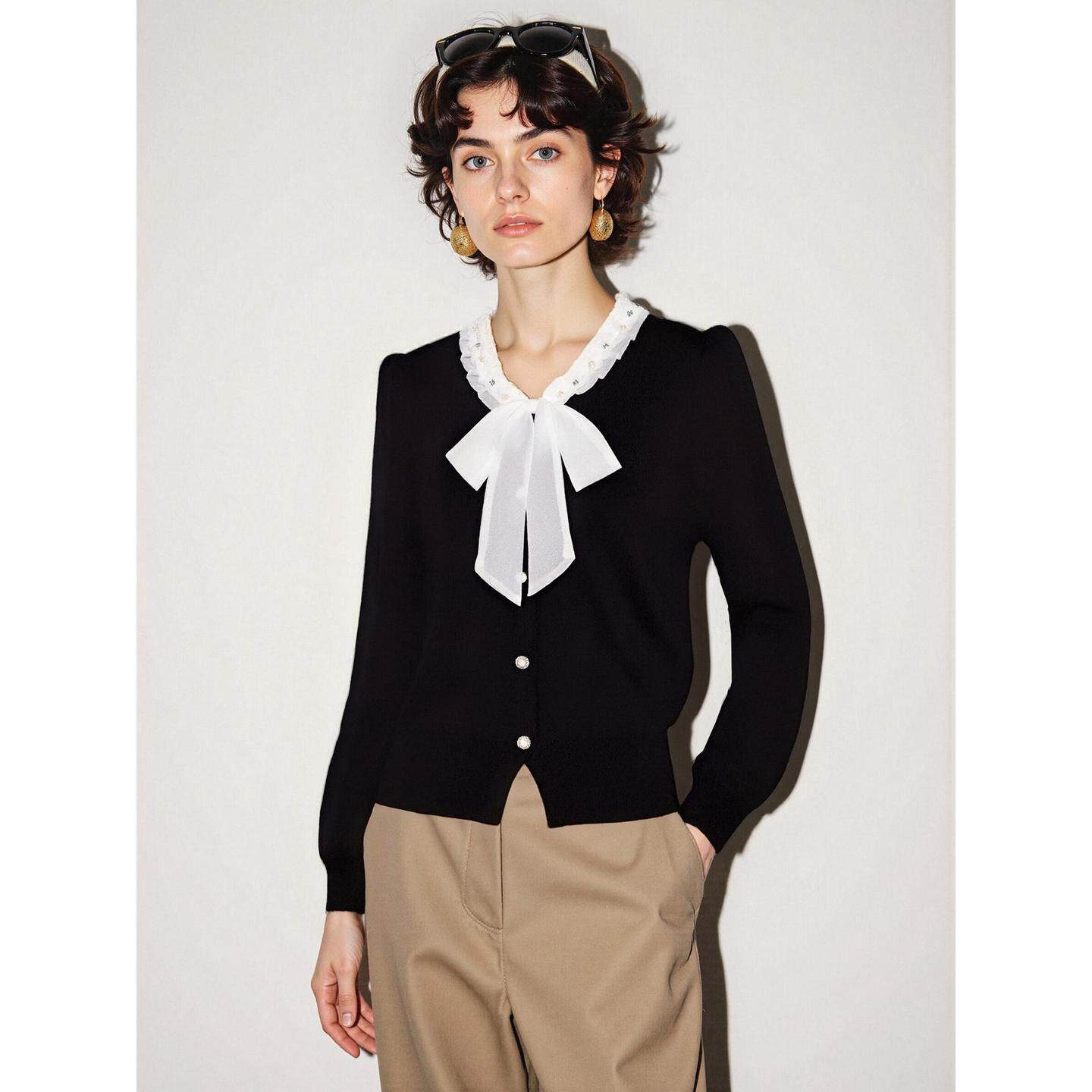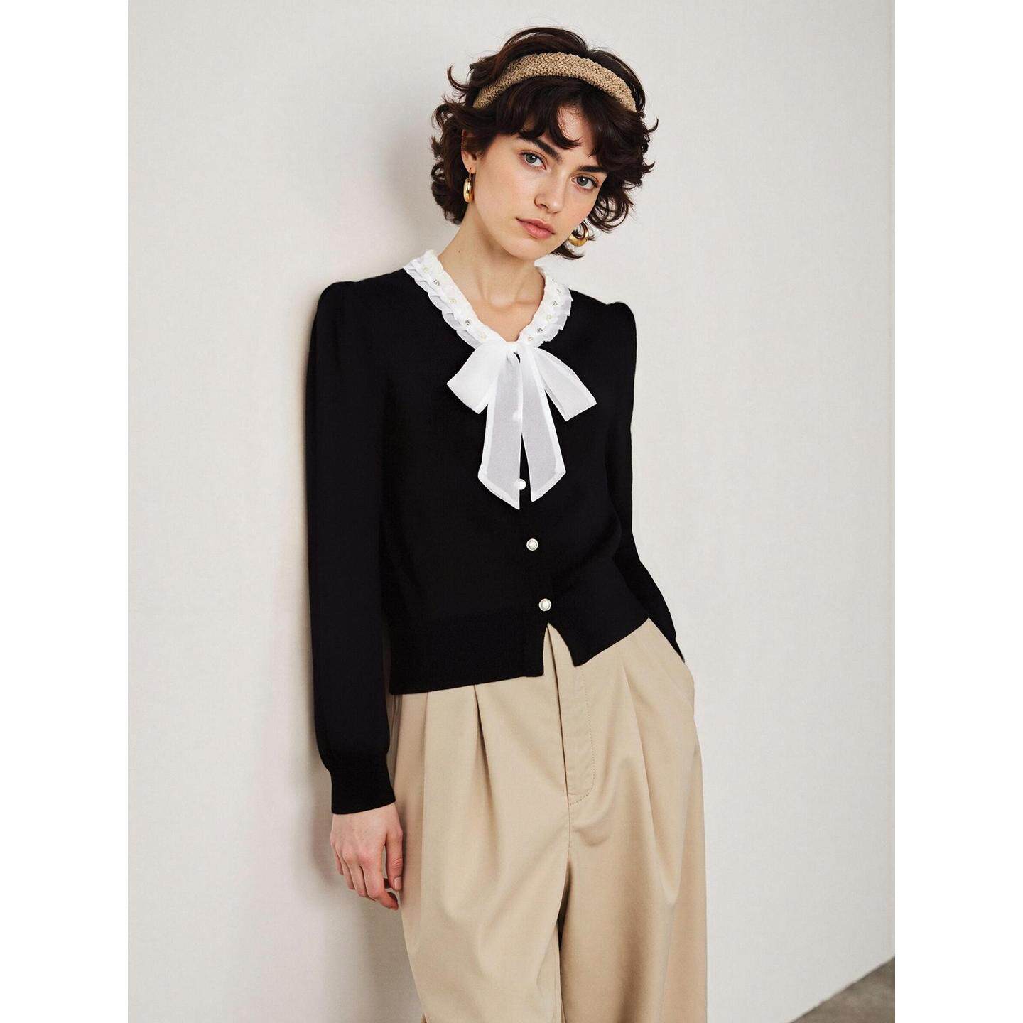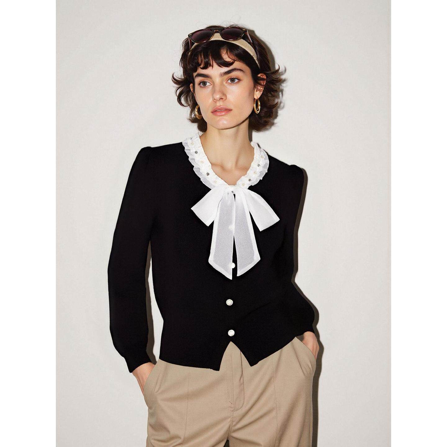 女士2026春季 百家好小香风蝴蝶结v领针织衫 收腰上衣 House Basic
