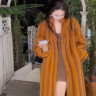 大南瓜挽袖 魔王同款 仿貂毛全抽刀皮毛一体轻奢外套女 琥珀流金