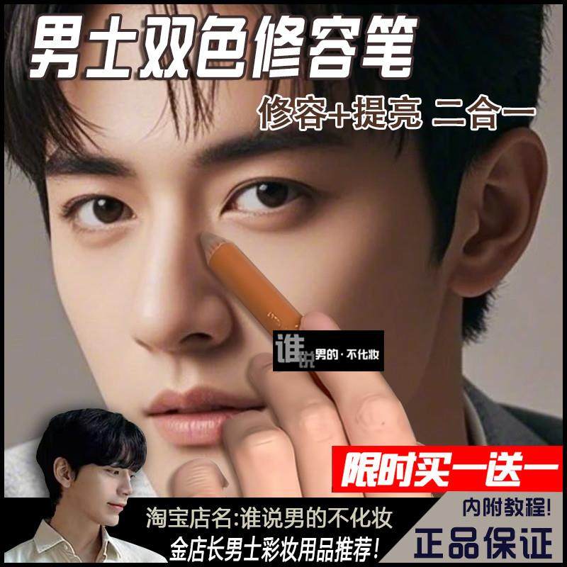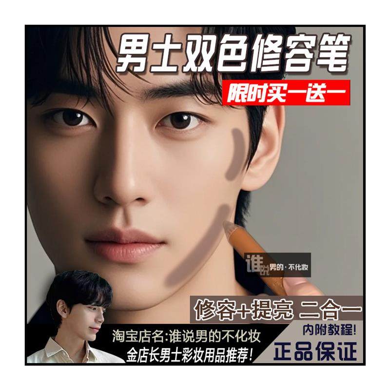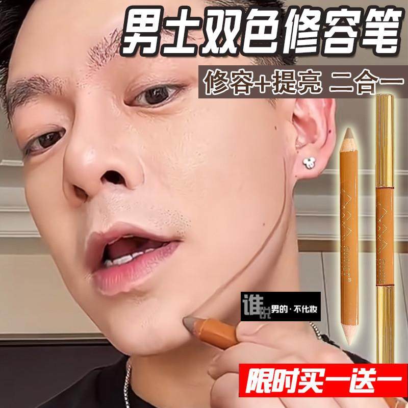 男生立体自然五官修容阴影高光笔二合一双头男士 卧蚕棒遮瑕男