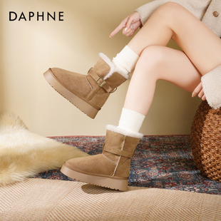 加绒短靴子毛毛面包保暖棉鞋 冬季 女 2025新款 达芙妮厚底雪地靴女款