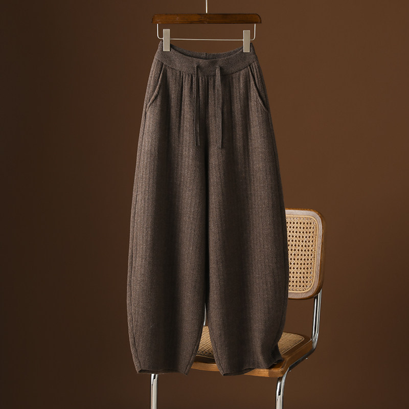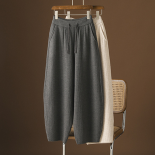 保暖香蕉裤 冬季 女秋冬加厚宽松弯刀气球裤 重磅加绒羊毛镰刀阔腿裤