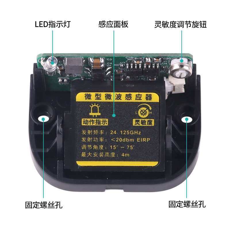 迷你微波感应器灵敏度可调LED灯光提示识别快速稳定M531