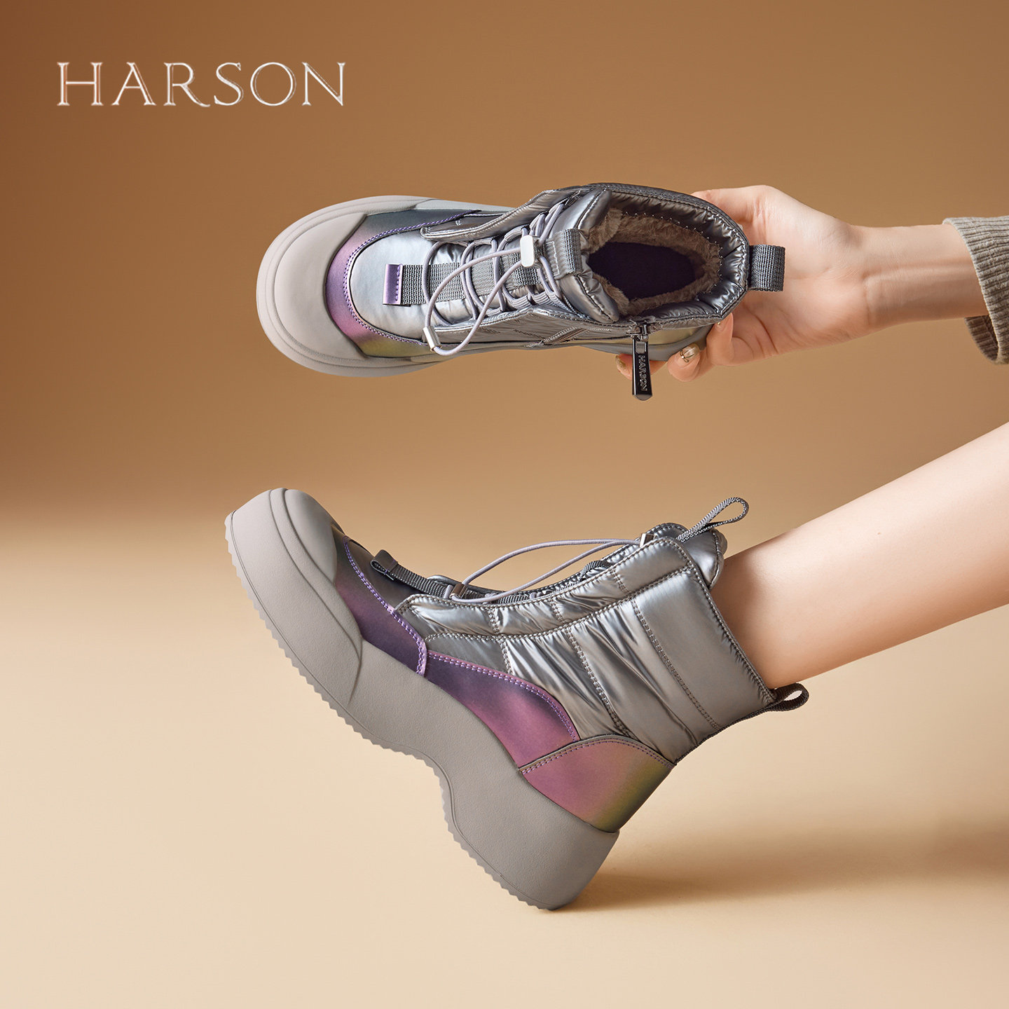加绒保暖雪地棉鞋 新款 休闲马丁靴 子2025冬季 哈森厚底雪地靴女鞋