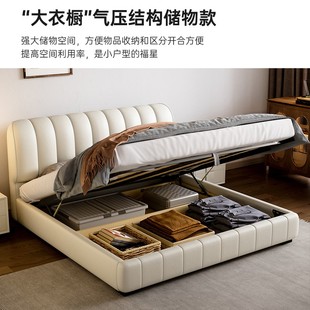 法式 主卧1米8双人大床 奶油风真皮床1.5米储物皮艺婚床2025新款