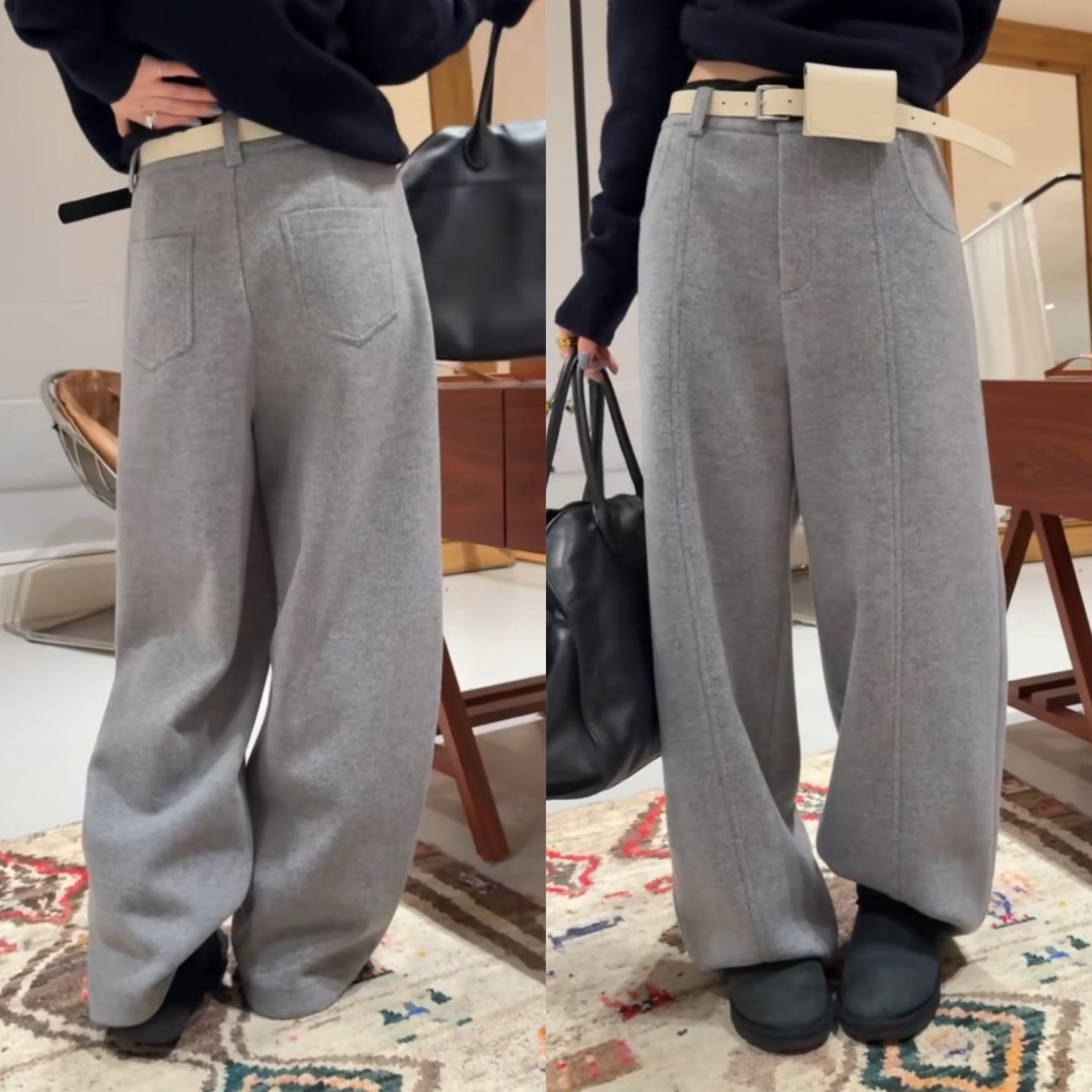 女 脚收口百搭显瘦百搭配腰包长裤 欧洲站2025冬季 加厚加绒前压线裤