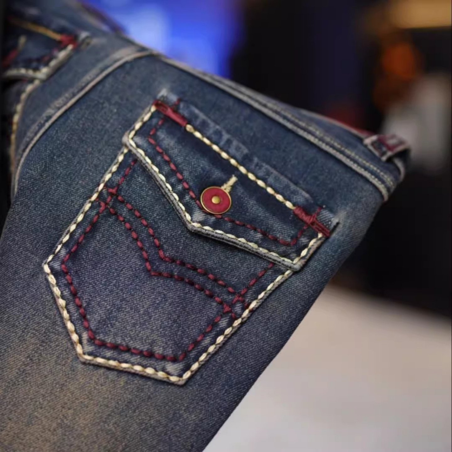 秋冬舒适弹力直筒牛仔裤 百搭手擦猫须洗水 DBJ383 蓝色多瑙河