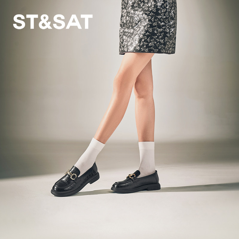 SSC3111N09 厚底圆头学院风英伦风通勤女鞋 星期六乐福鞋 新款