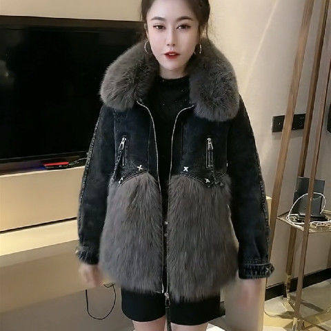 皮毛一体夹克外套短款 黑色修身 上衣女 原创设计秋冬新款 7Shiftin