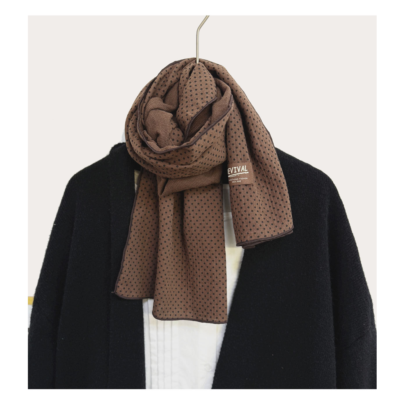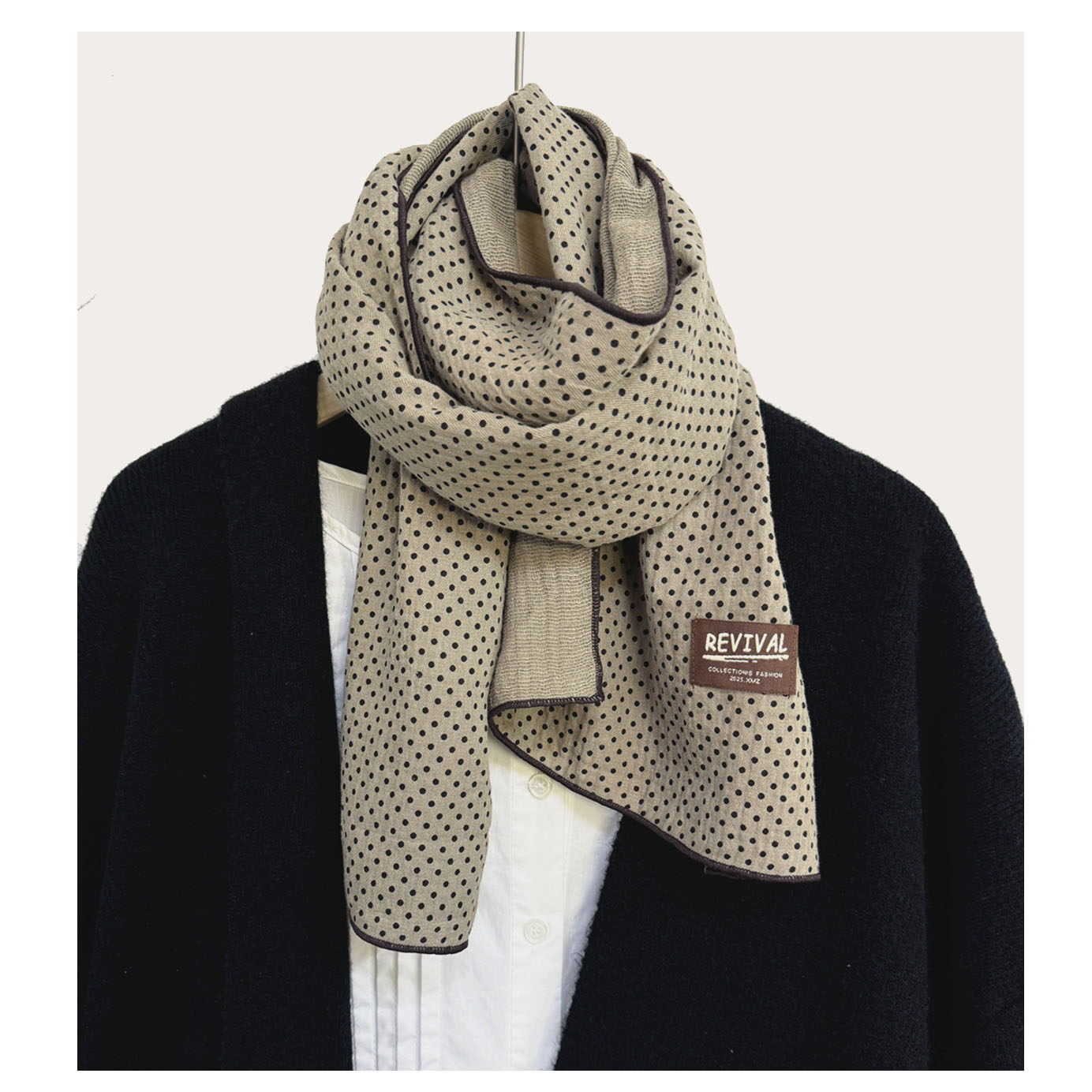 日系复古棉麻波点纯色双面围巾秋冬双面百搭文艺气质保暖围脖领巾