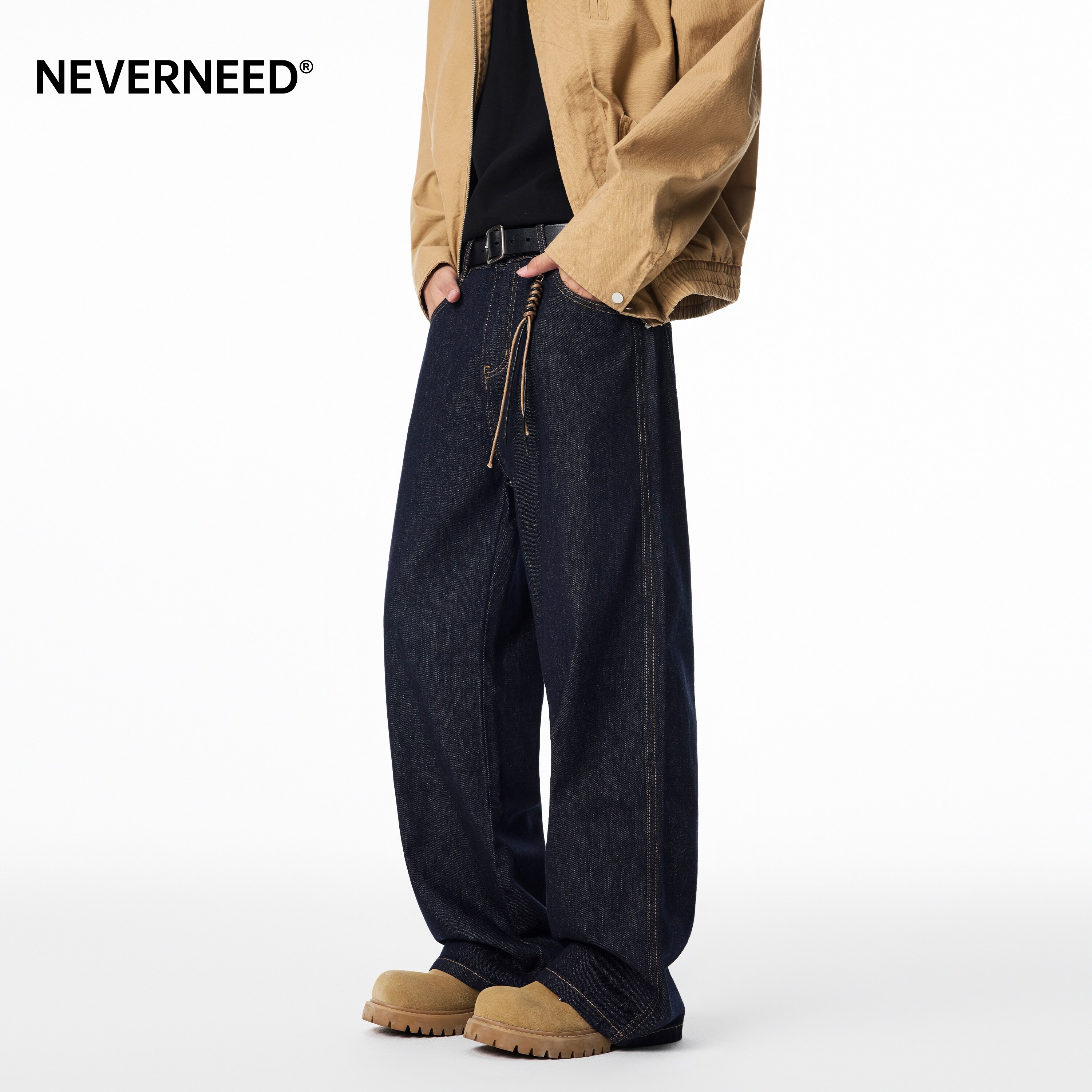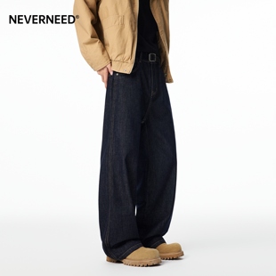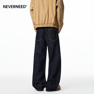 cleanfit宽松A字裤 美式 男女冬季 NEVERNEED原色加绒加厚直筒牛仔裤