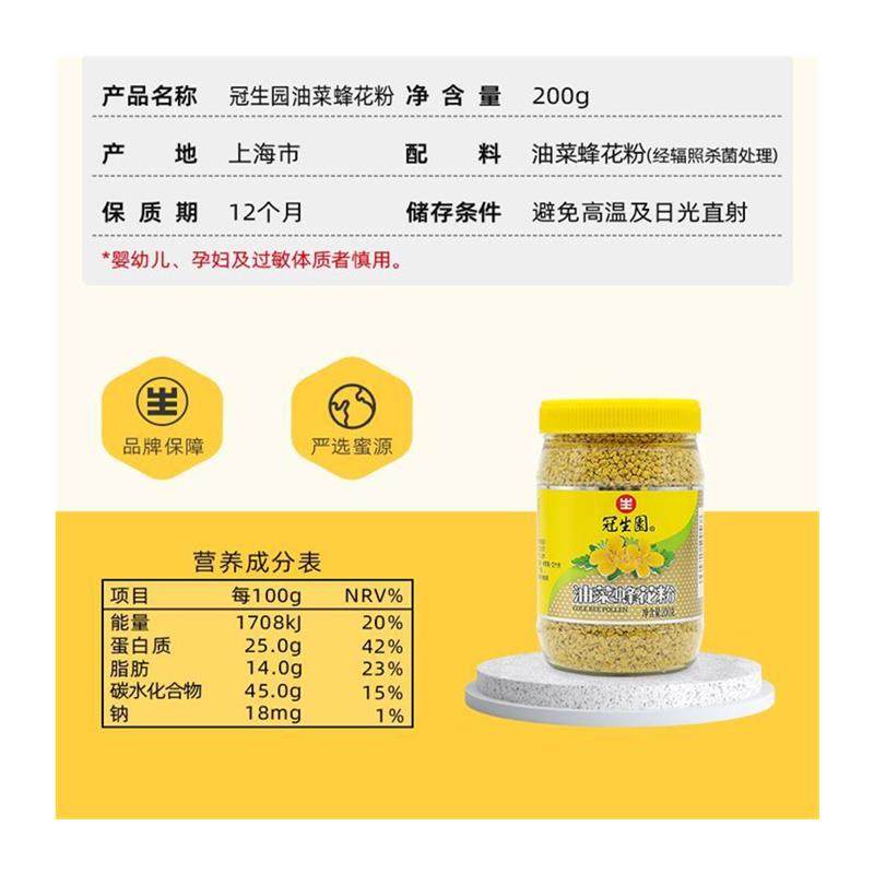 2瓶装 油菜蜂花粉200g 冠生园花粉 中华老字号