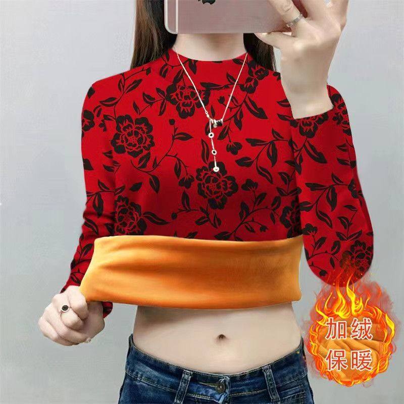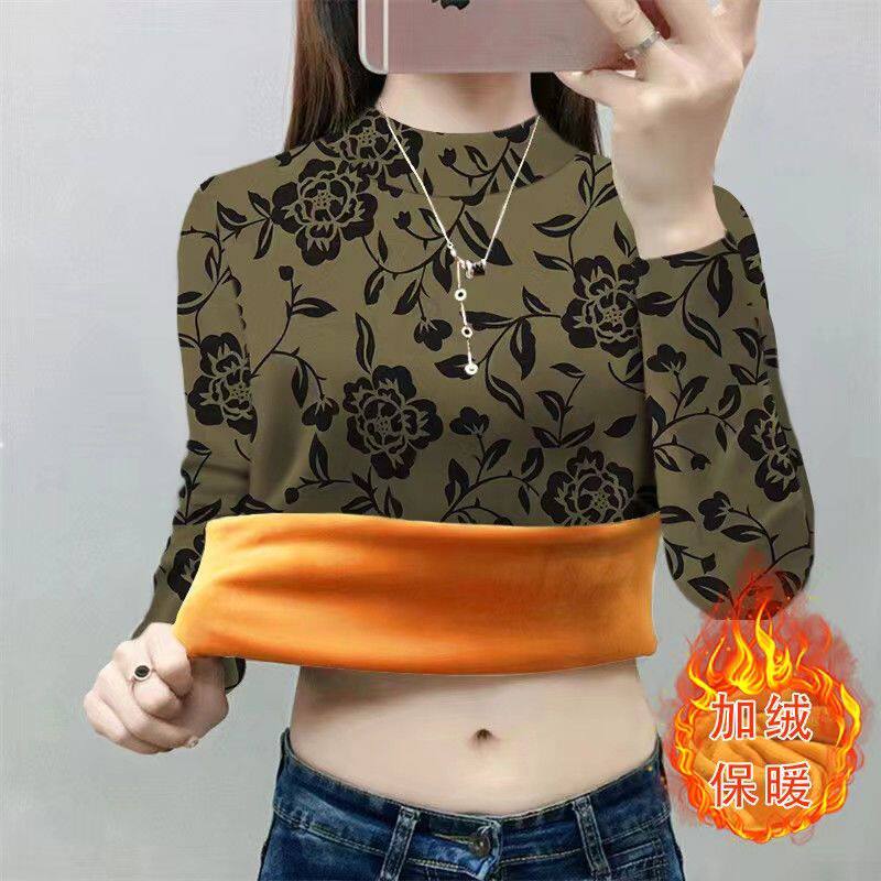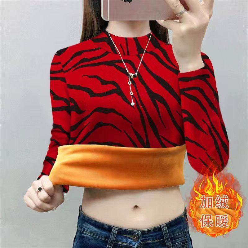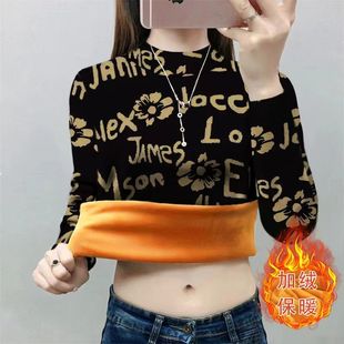 百搭减龄显瘦卫衣服 洋气韩版 秋冬半高领加绒加厚豹纹打底衫 女时尚