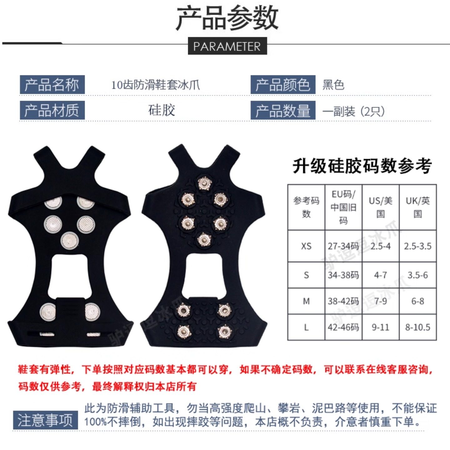 冰爪防滑鞋 钉老人儿童登山10齿雪爪防滑神器 套户外冰上雪地靴鞋
