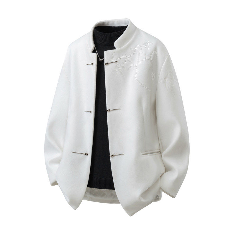 羊毛呢外套女 立领双面羊毛大衣系带假两件针织袖 2025冬季 斗篷新款